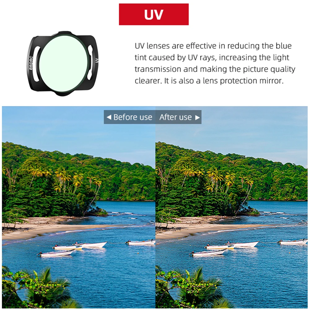 4. Instalación rápida:Instalación rápida no destructiva para un reemplazo rápido del filtro. El filtro está equipado con clips en la parte superior, inferior, izquierda y derecha, lo que hace que sea fácil de instalar y no sea fácil que se caiga durante el vuelo.