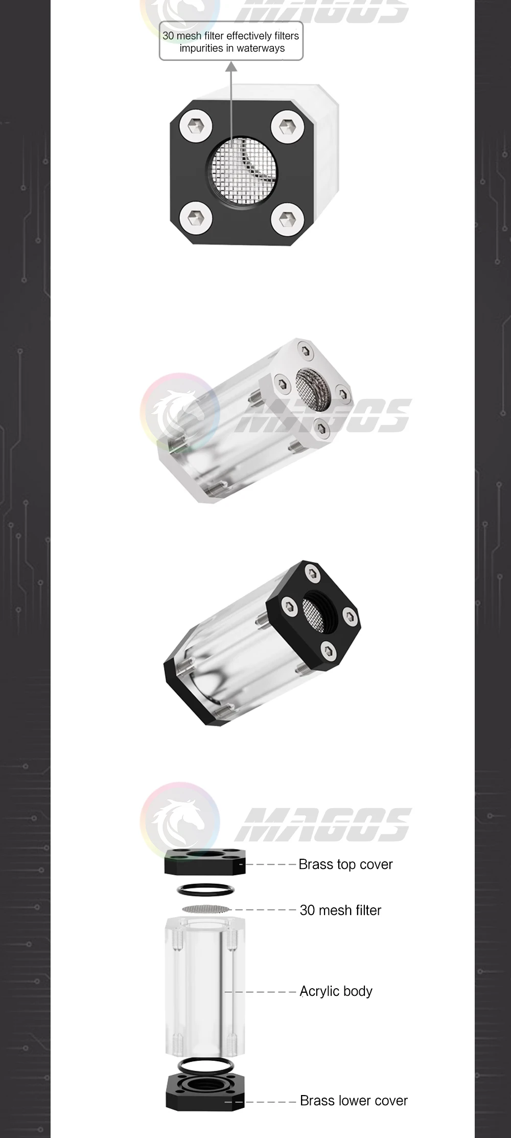 Comprar Filtro metálico de refrigeración por agua para PC FREEZEMOD, filtración de líquido frío de rosca G1/4, acrílico de un solo lado + filtro de cobre GLQ-JX3