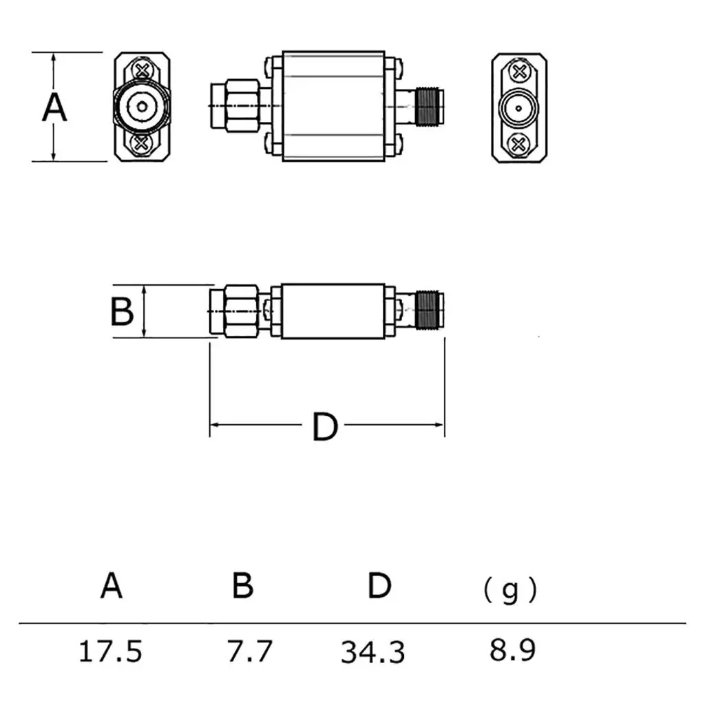 Banda de paso 3dB: 3300 ~ 3650 MHz