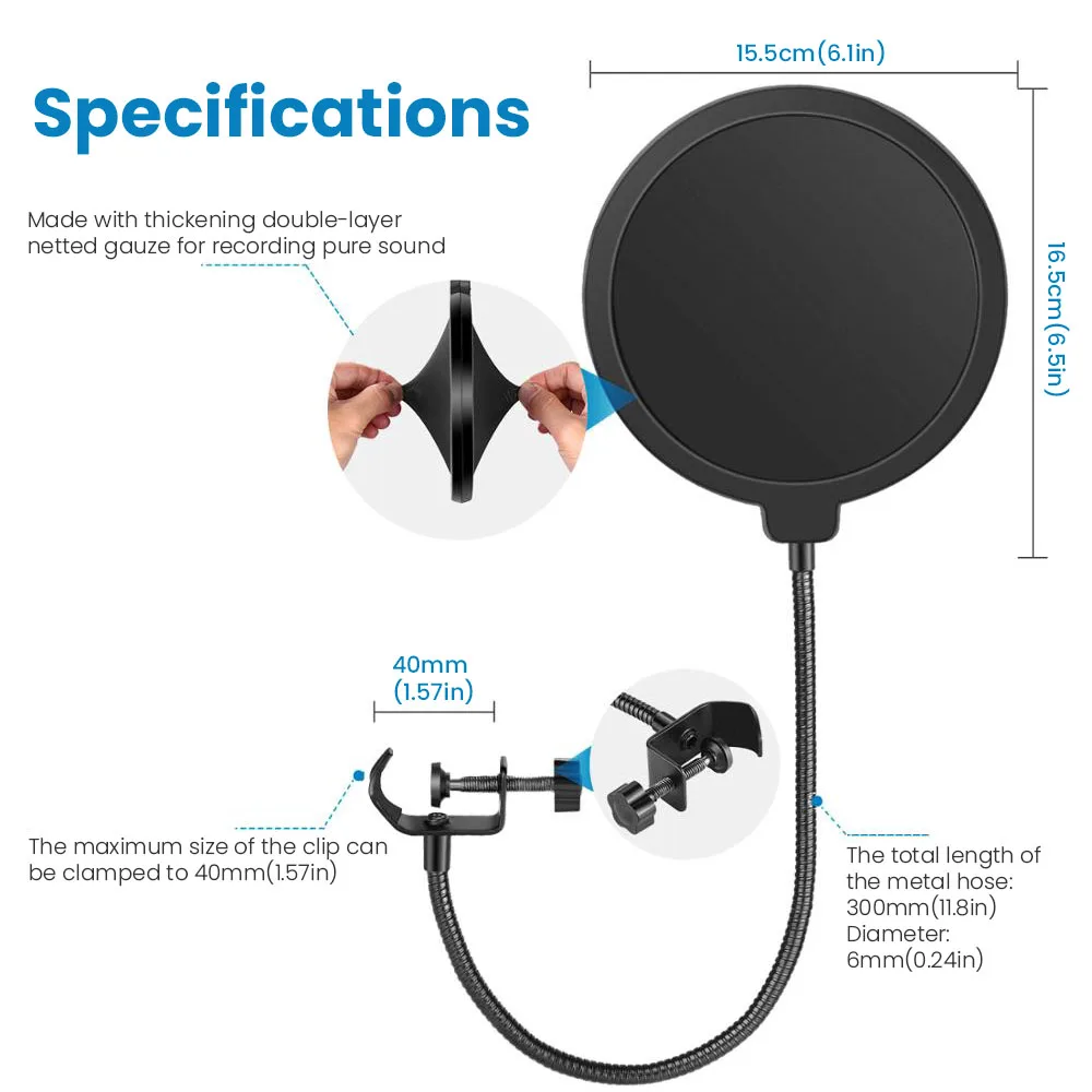 Proteja su amado micrófono: el filtro pop profesional de doble capa está diseñado tanto para cantantes, serpentinas como para actores a quienes les gustaría lograr el mejor rendimiento. También ayuda a prot.