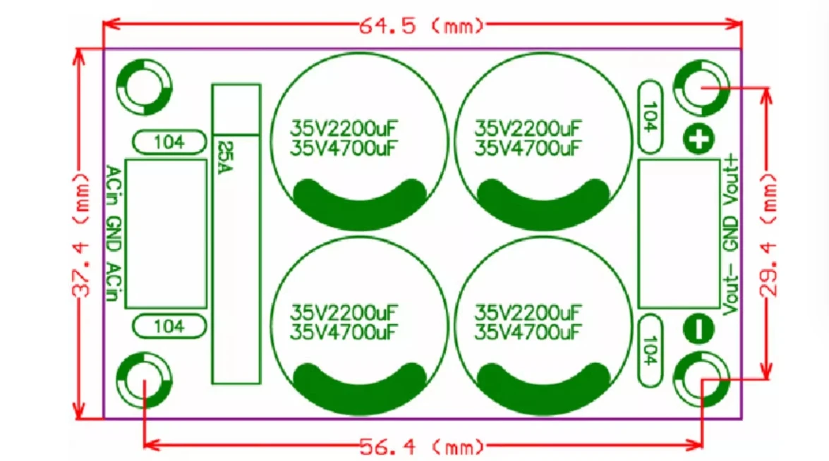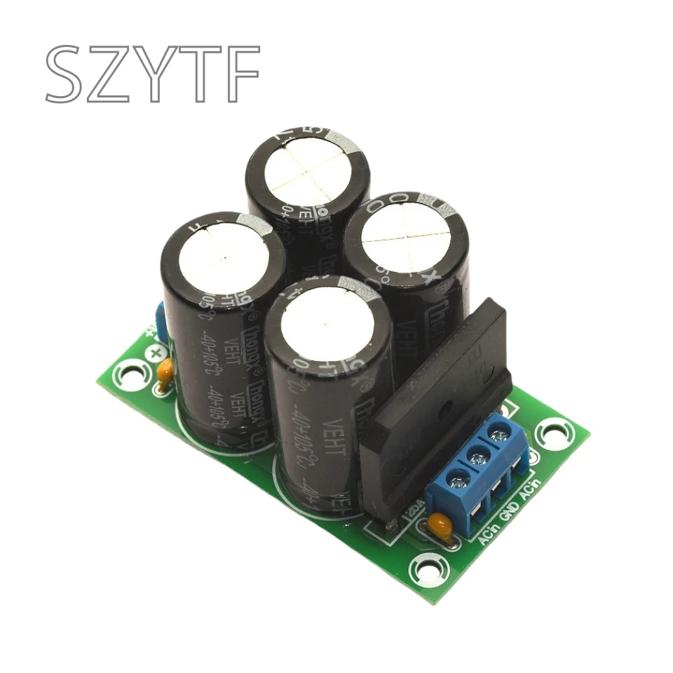 La rectificación de puente completo aumentará el voltaje de aproximadamente 1,4 veces. Si la entrada de CA es de 12 V, la salida es de aproximadamente 17 V CC. La versión de 63 V es adecuada para situaciones en las que el voltaje de salida no excede ± 63 V. El voltaje de salida del transformador fluctuará junto con las fluctuaciones de la fuente de alimentación eléctrica. En uso real, no pruebe el límite superior de la fuente de alimentación. ¡Deje siempre un margen! Si el voltaje aumenta, ¡es muy probable que el condensador explote! Especialmente para electrolitos como 35V10000uf, que son pequeños en volumen pero de gran capacidad.