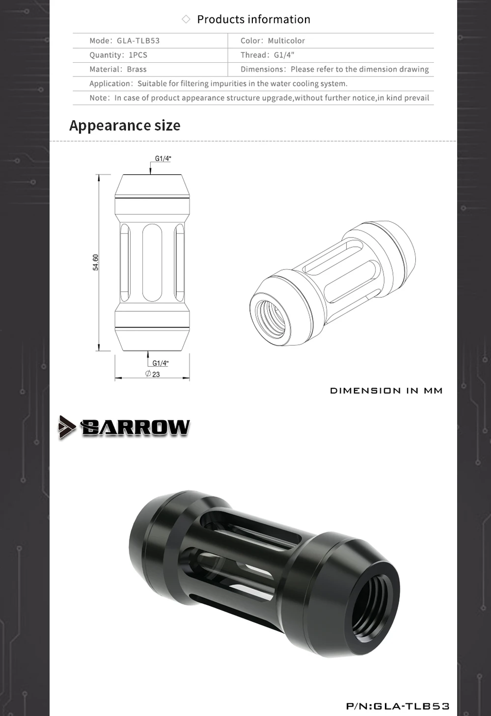 Comprar Filtro de refrigeración por agua Barrow (placa compuesta), doble hembra G1/4 ", negro, plateado, blanco, 11 colores, GLA-TLB53
