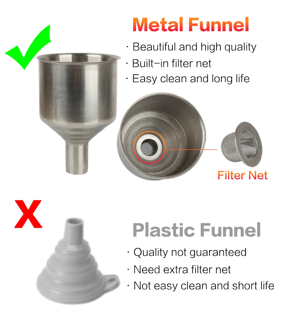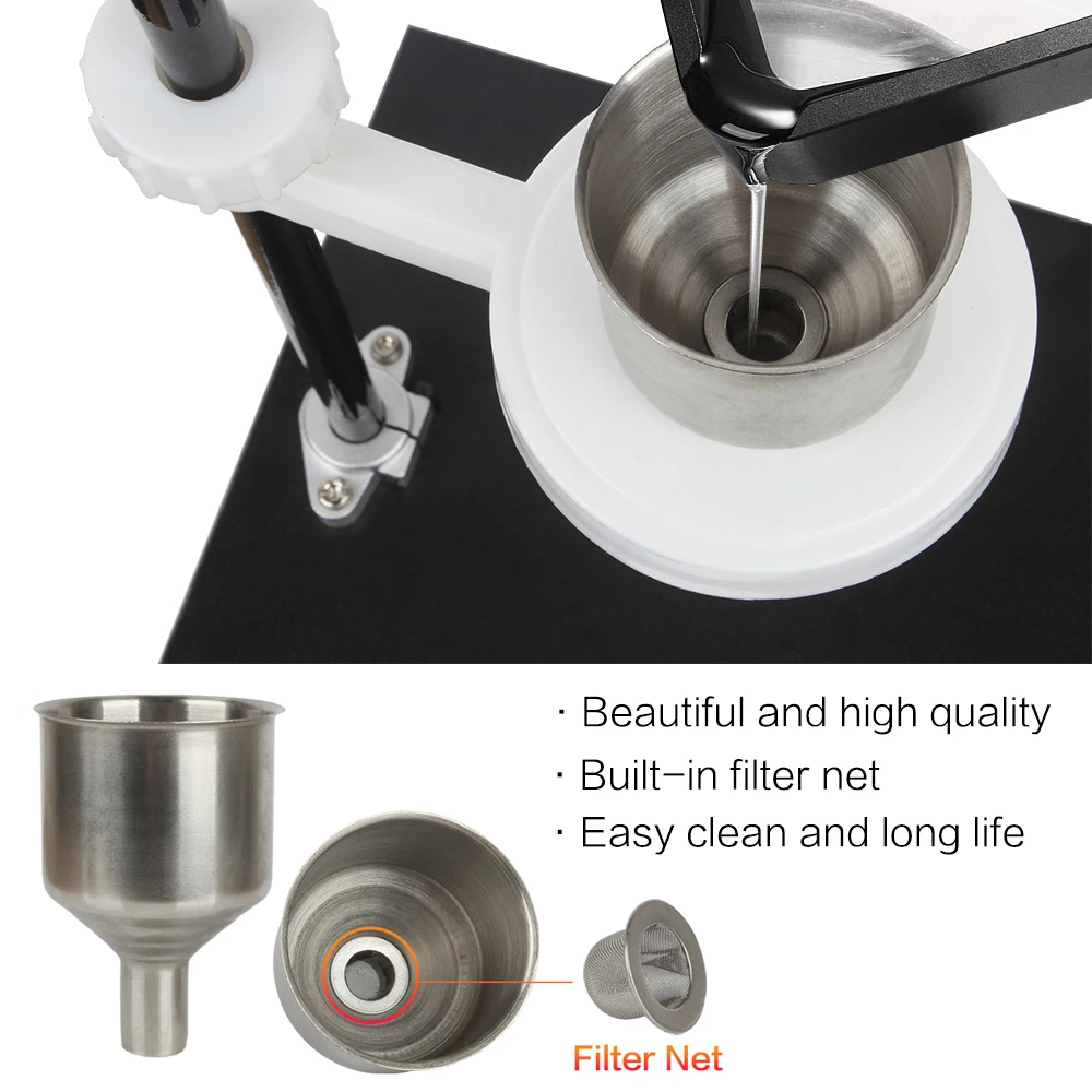 Soporte de embudo de Metal utilizado para verter resina de nuevo en una botella. Se adapta a todo tipo de botellas de 15mm de ancho de cuello. Recuerde siempre usar un filtro de resina cuando vierta resina en la botella. De lo contrario, los restos de impresiones fallidas, los soportes rotos y otras brocas curadas contaminarán su botella.