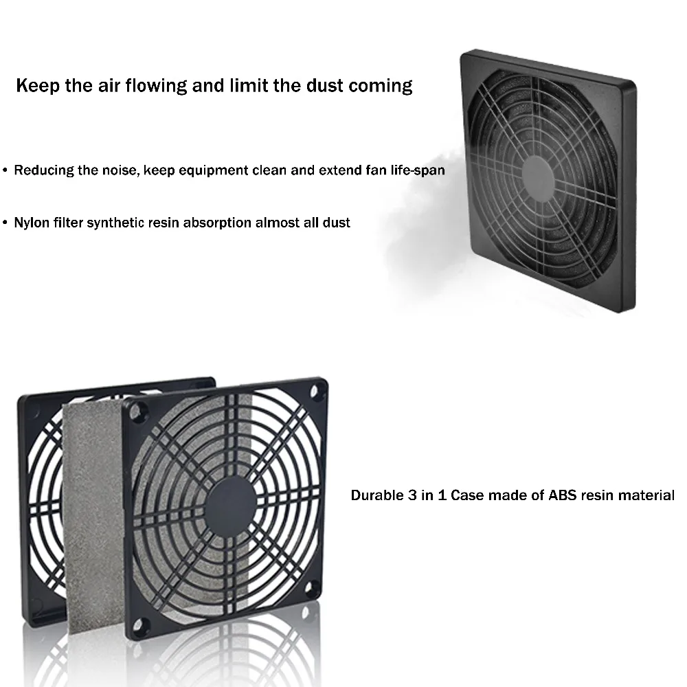 40MM/50MM/60MM/80MM/92MM/120MM negro 3 en 1 filtro de ventilador a prueba de polvo