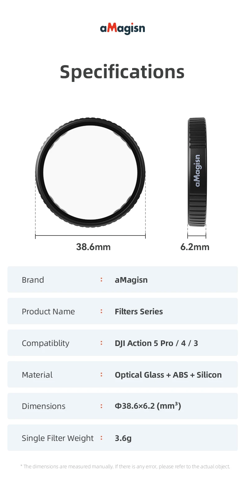 El grosor compacto de 6,2 mm y el diámetro de 38,6 mm garantizan total compatibilidad con lentes gran angular. Evite rincones oscuros o distorsiones, incluso en condiciones de poca luz, para obtener resultados de nivel profesional".