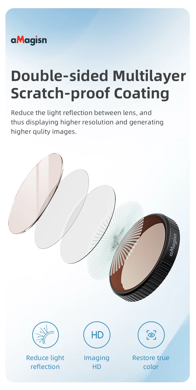 El revestimiento avanzado de doble cara minimiza los reflejos y el deslumbramiento de la lente, brindando imágenes nítidas y de alta resolución con colores realistas.Ideal para capturar paisajes vibrantes, retratos y escenas dinámicas en condiciones de iluminación desafiantes.