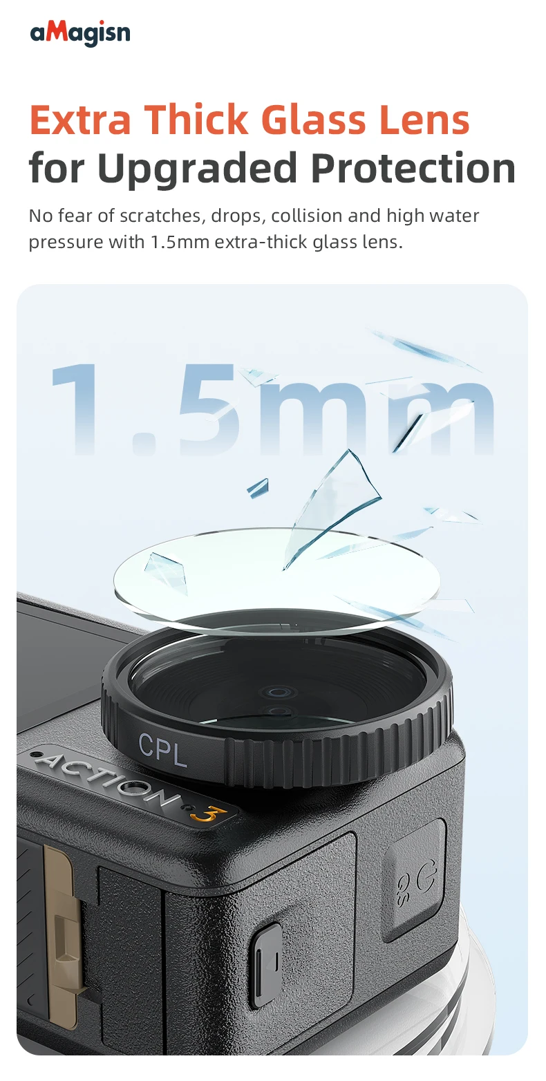 El vidrio templado espesado resiste rayones, caídas y ambientes de alta presión.Perfecto para aventuras al aire libre, fotografía submarina o terrenos accidentados, brinda protección confiable sin comprometer la calidad de la imagen.