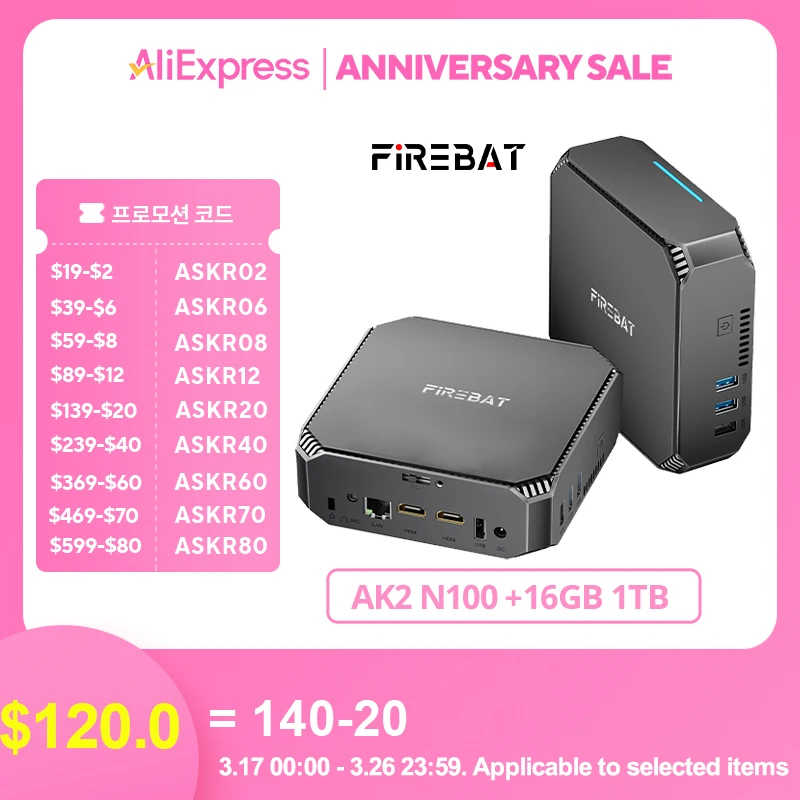 Comprar FIREBAT AK2 PLUS Mini PC Gamer Intel N100 CPU Windows 11 Mini PC Gaming DDR4 16GB RAM 512GB SSD NVME M2 WIFI5 BT4.