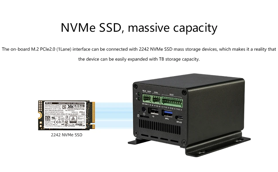 1 × M.2 slot is for 2242 SATA3.0 SSD (default), compatible with 2242 PCIe2.0 NVMe SSD