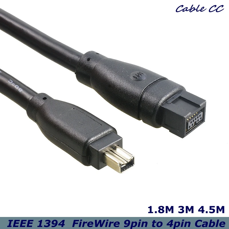 Comprar FireWire-cable conector IEEE 1394B, 800-1394, 400, 9-4, 9 pines a 4 pines, 1,8 m, 6 pies, negro, 3m, 4,5 m, para cámaras de vídeo digitales