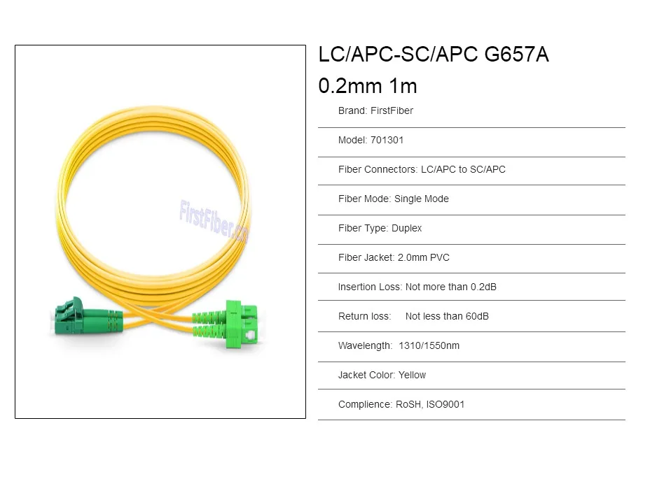 FirstFiber-Cable de conexión de fibra doble, Cable de conexión de 1m LC APC a SC APC G657A, 2 núcleos, puente, parche, 2,0mm, PVC OS2 SM Bend, sensible