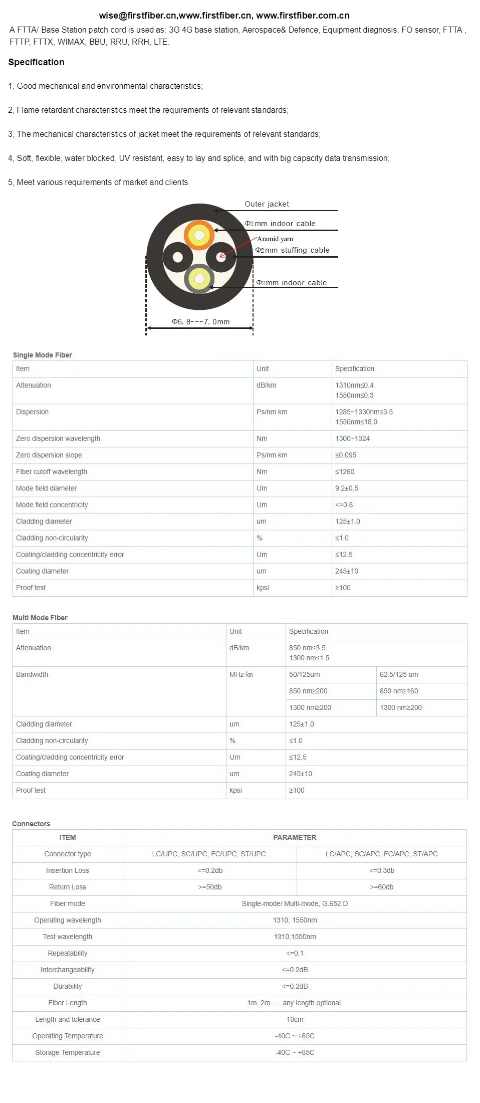 Comprar FirstFiber-cable de parche FTTA para exteriores, accesorio para Estación base G652, LSZH, 25m, 50m, 100m, 2 núcleos, LC UPC a SC UPC SM cprif