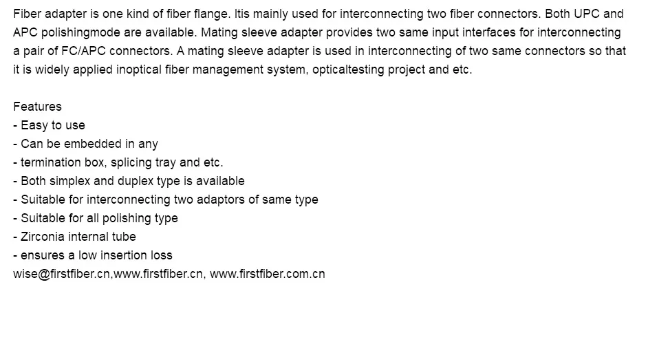 FirstFiber hembra FC a hembra ST Simplex adaptador de fibra óptica, Conector de fibra