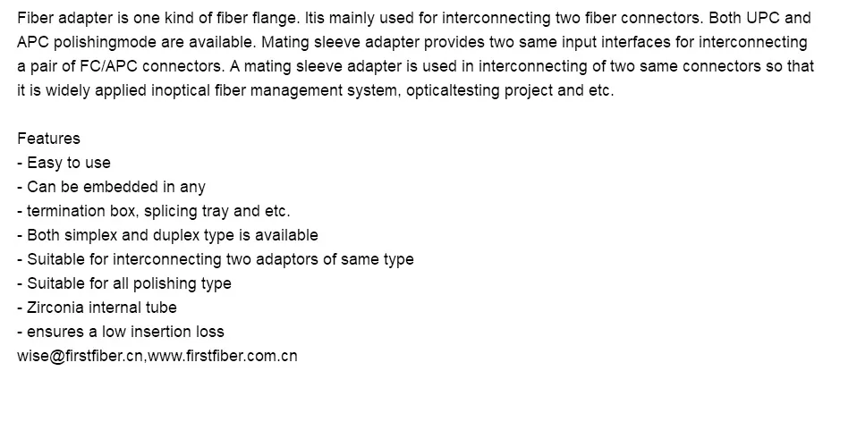 Comprar FirstFiber-tubo interno de circonia, adaptador de fibra de metal, Conector de fibra óptica simple, forma cuadrada, FC/APC a FC/APC