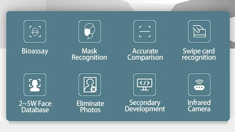 3.Control de acceso con reconocimiento facial, cámara binocular infrarroja HD de 20 pulgadas Distingue eficazmente entre la vida y las fotos y rechaza