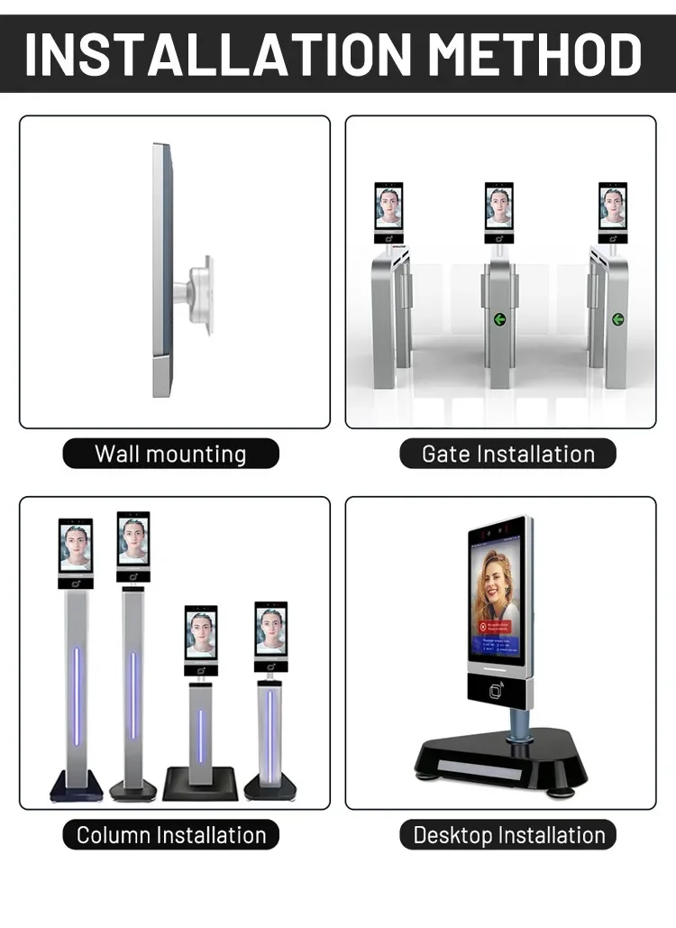Terminal de control de acceso de asistencia y tiempo de reconocimiento facial de 8 pulgadasCaracterísticas principales: 1.Notificación por correo electrónico/SMS 2.Detección de mascarilla facial
