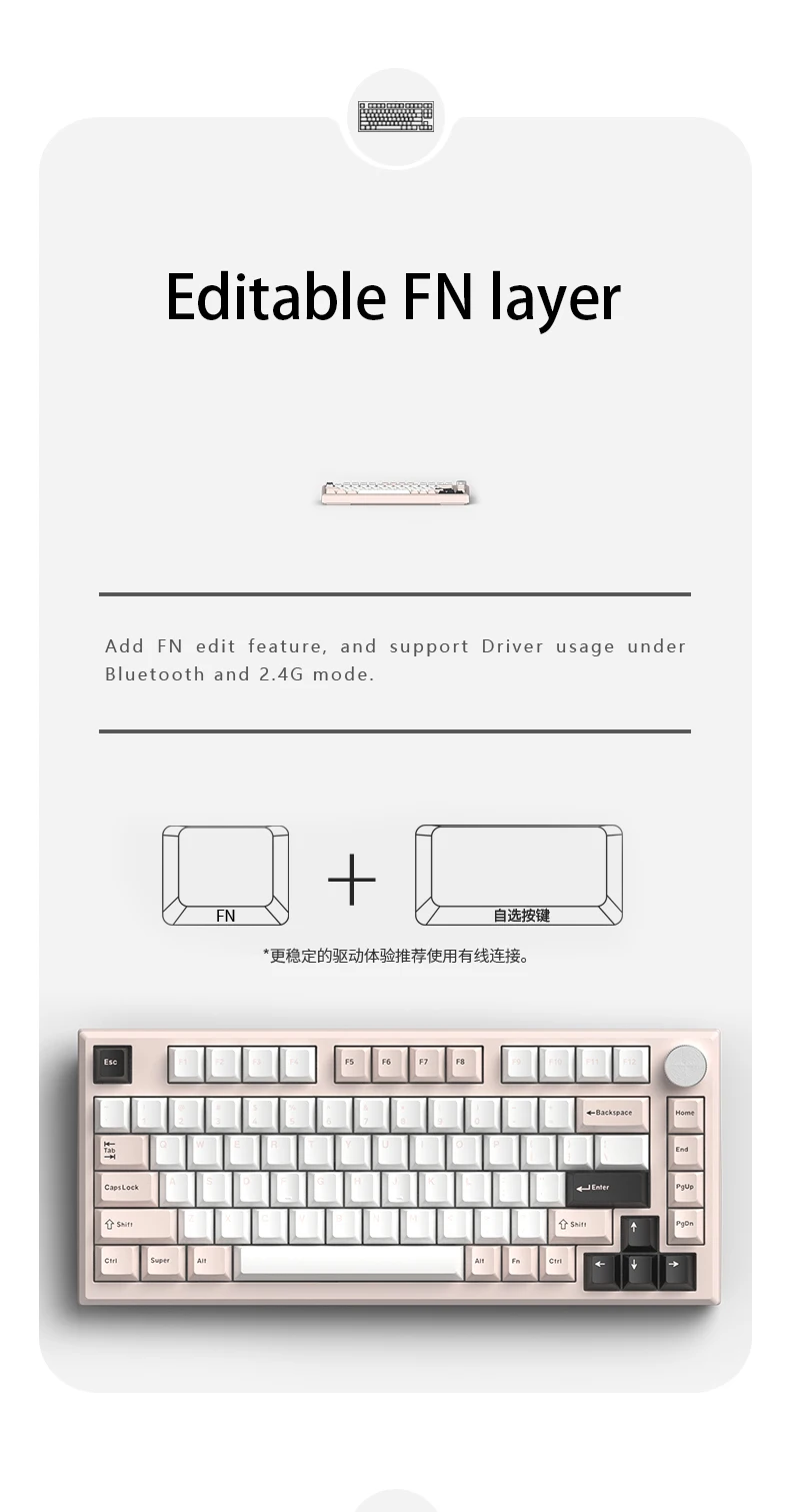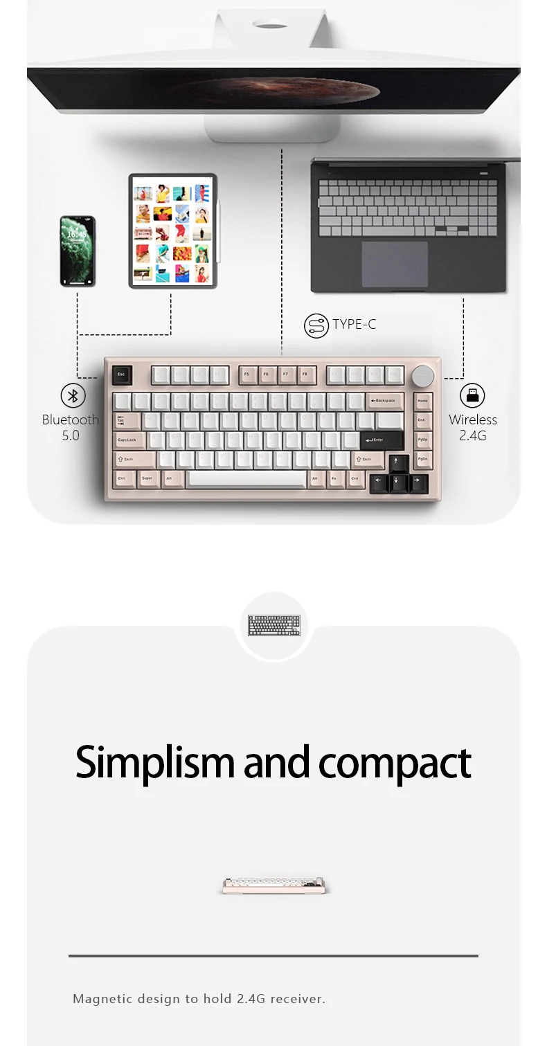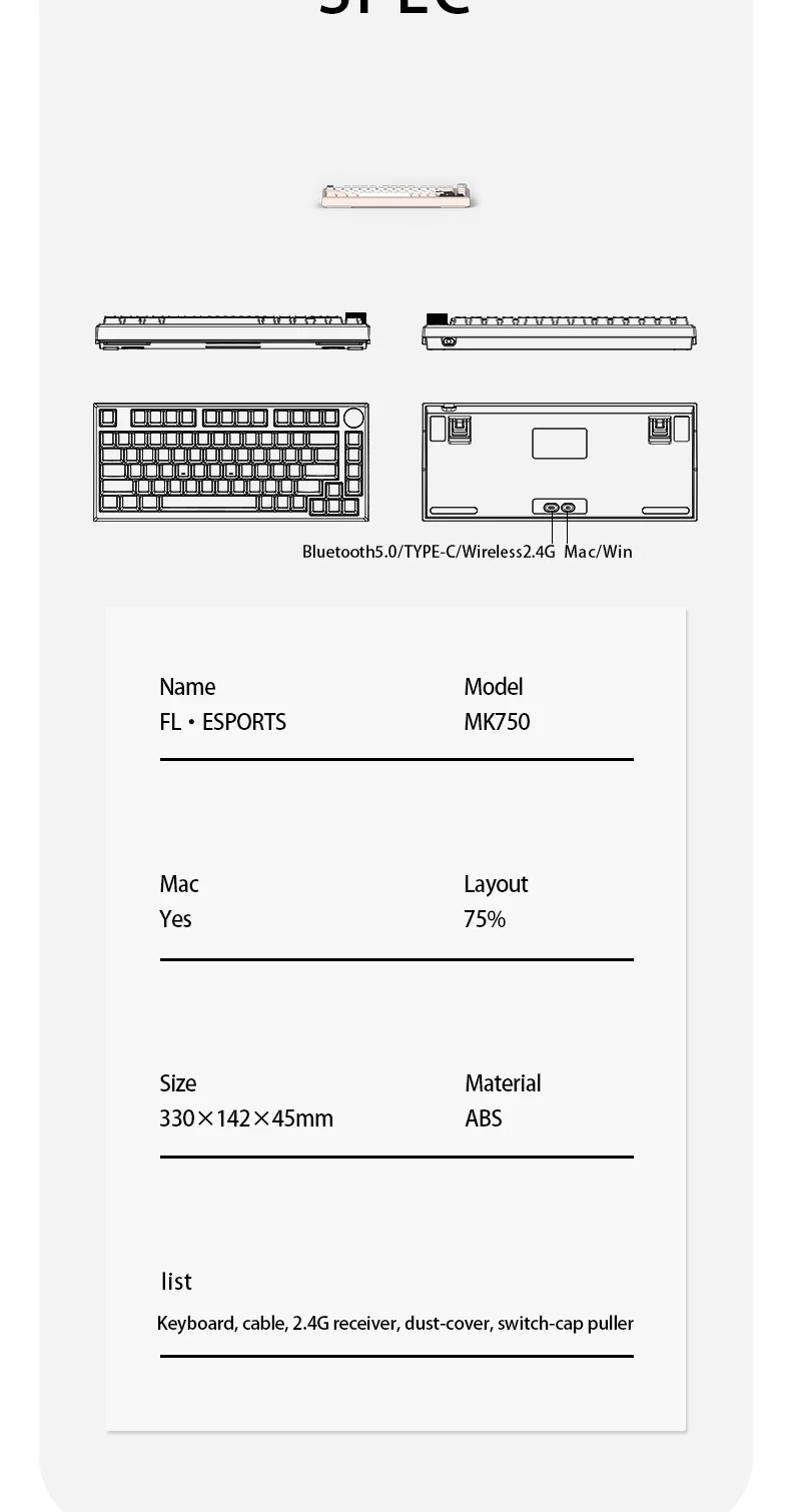Comprar Flesports-Kit de teclado mecánico MK750, 3 modos, 2,4g, Bluetooth, RGB, retroiluminado, LED, enchufe intercambiable en caliente, NKRO, programable, USB C, perilla