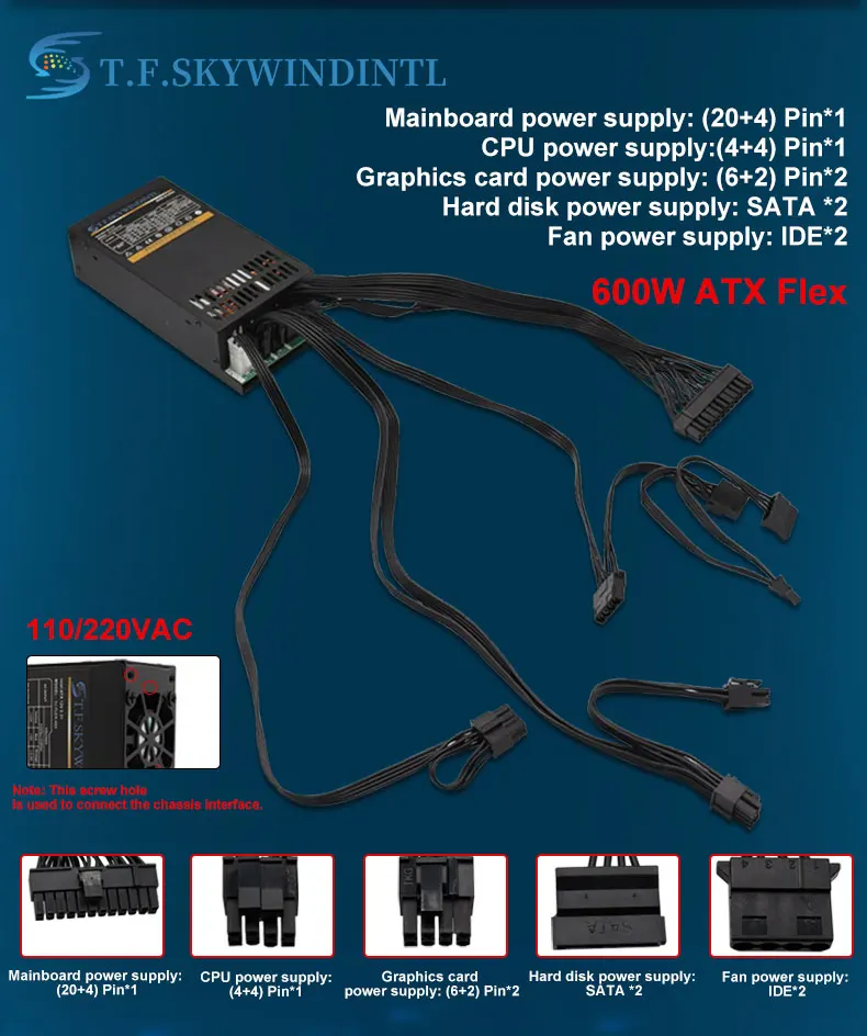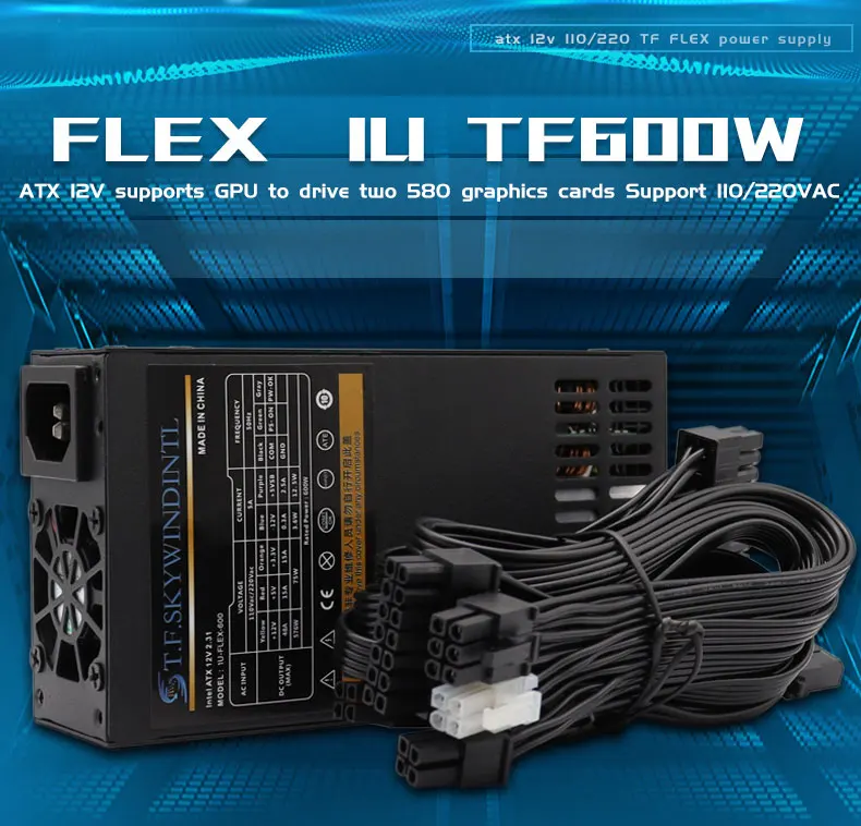 Fuente de alimentación modular Flex 600W, fuente de alimentación pequeña 1U para ordenador, fuente de alimentación Flex-ATX 500W para ITX mini PC PFC activo para POS AIO escritorio 110V 220V