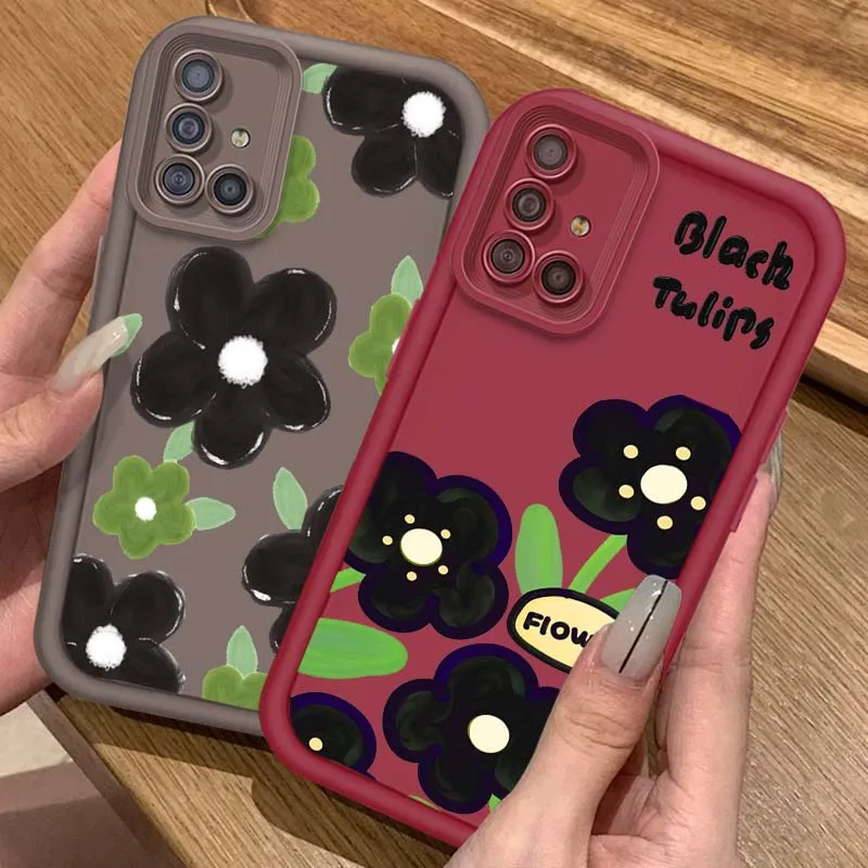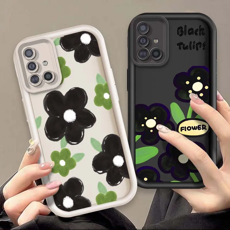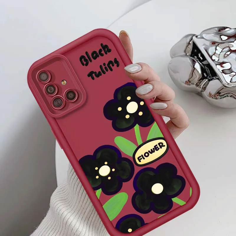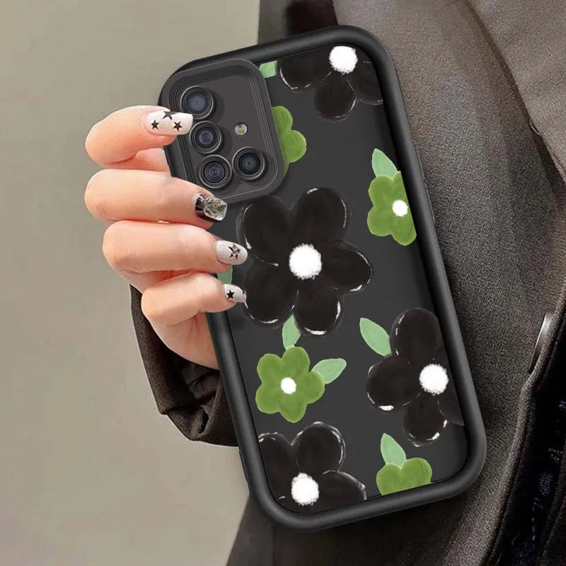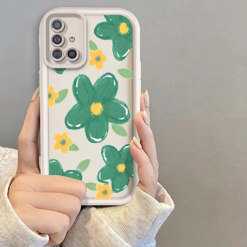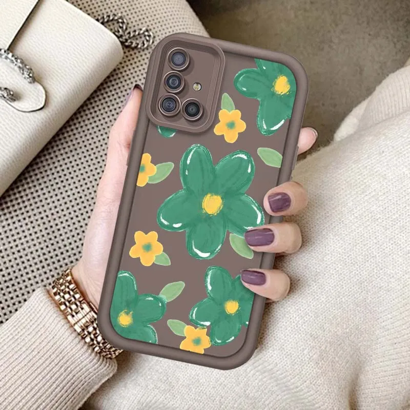 Comprar Flores dibujadas a mano verdes para Samsung A73 A72 A56 A55 A54 A53 A35 A32 A25 A24 A23 A21s A14 A05 5G caja de teléfono con escalera ocular