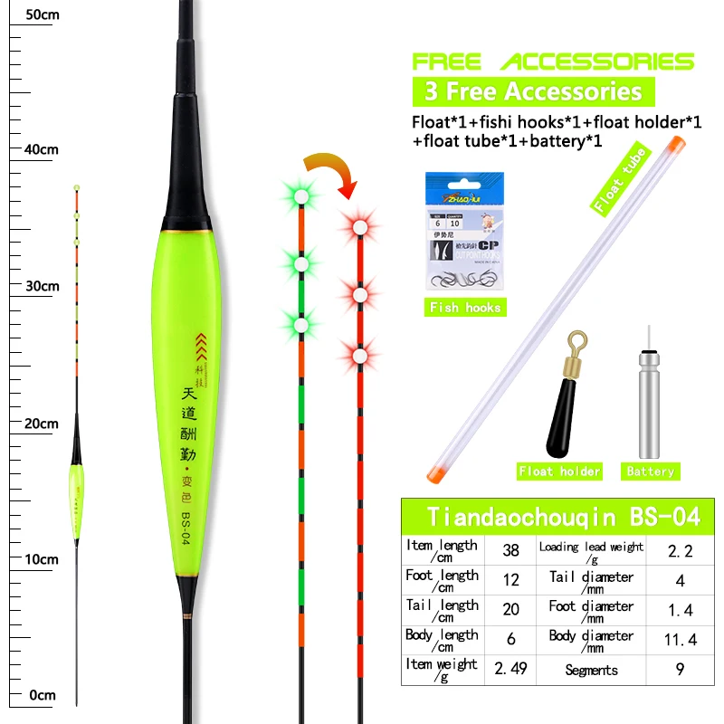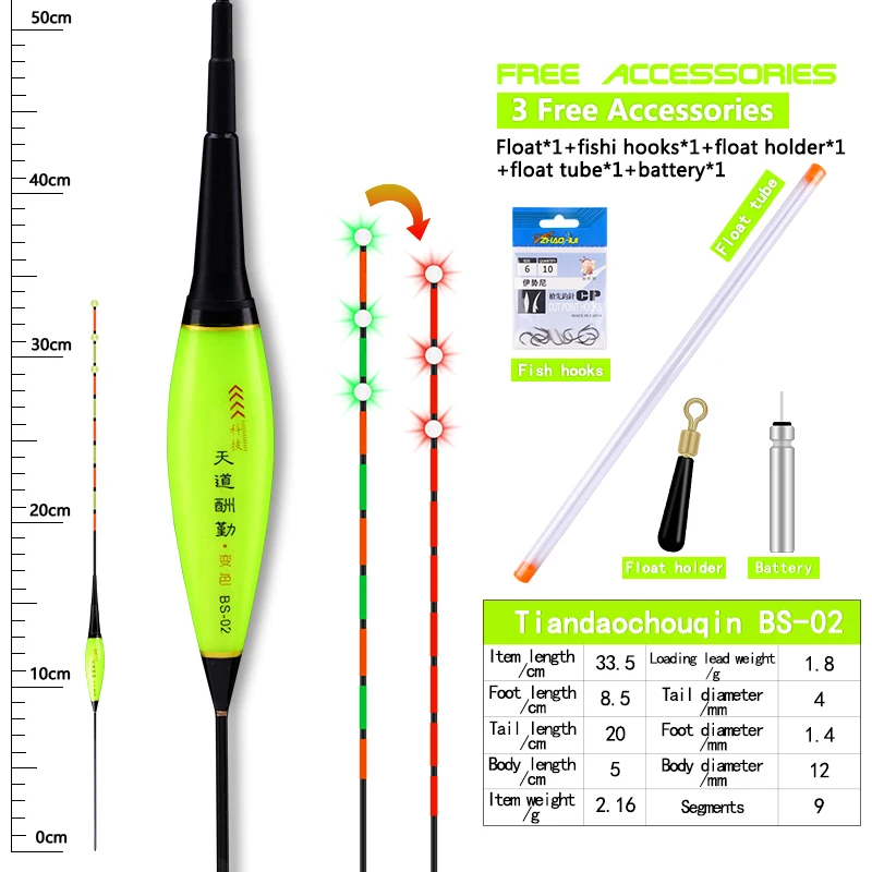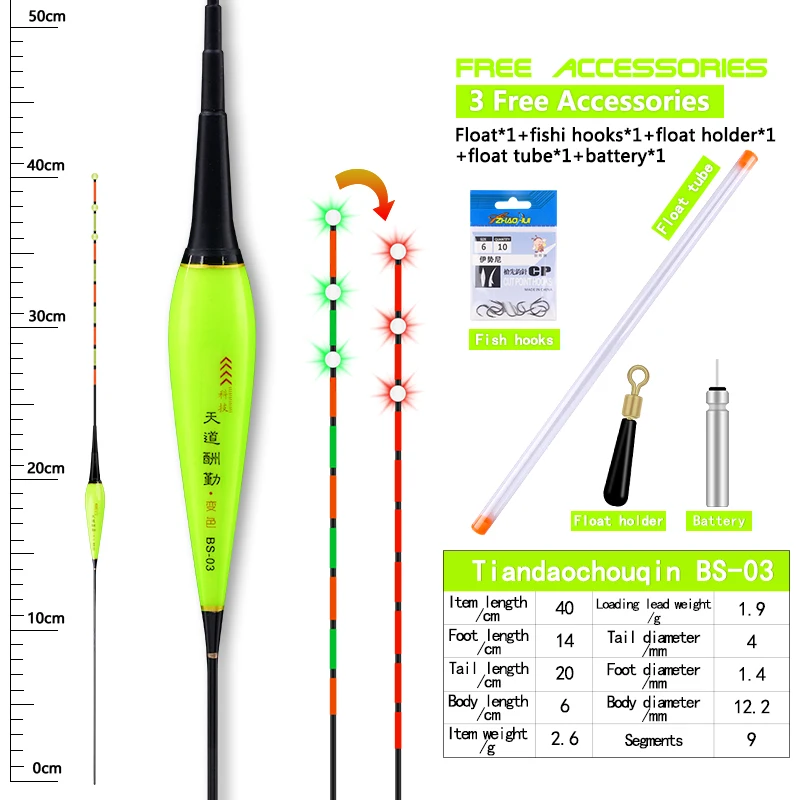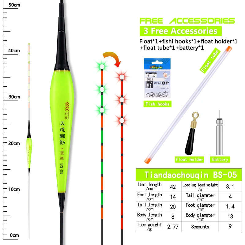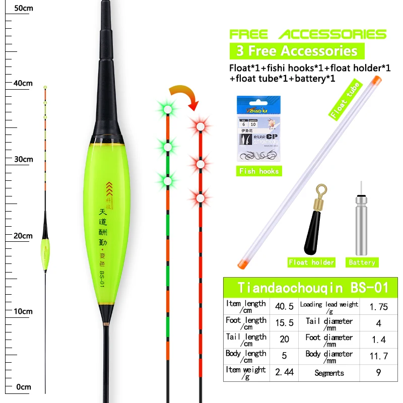Comprar Flotador eléctrico + 1 CR425 + 1 tubo + 1 bolsa de ganchos + 1 boya de asiento, luz trasera inteligente, Sensor de gravedad, equipo de boya Vertical para Pesca, 1 ud.