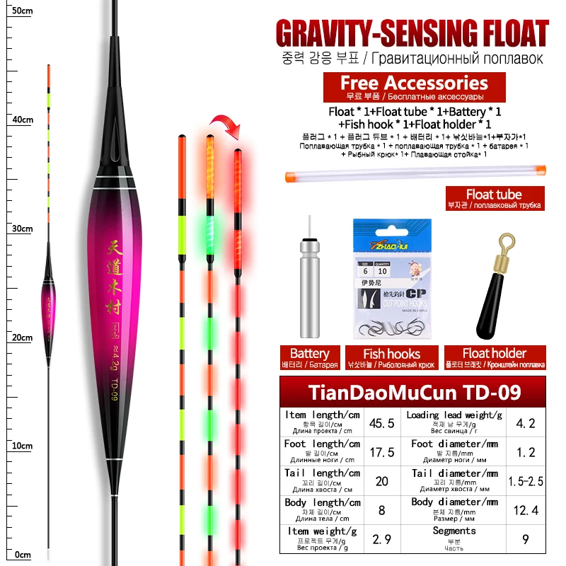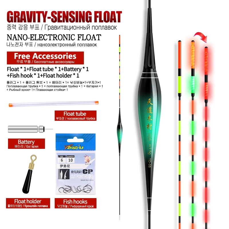 Sensor de gravedad de cambio de Color eléctrico, flotador + 1 CR425 + 1 tubo + 1 gancho de bolsa + 1 cola de flotador con 1 aparejo de boya Nano de cuentas, 1 unidad