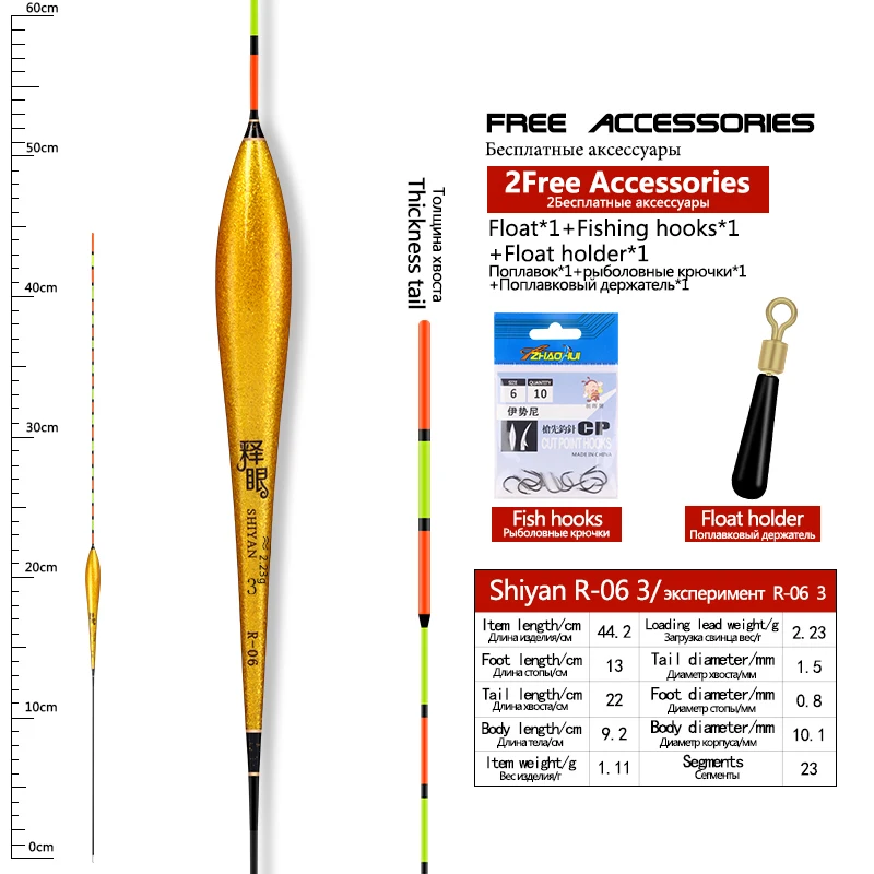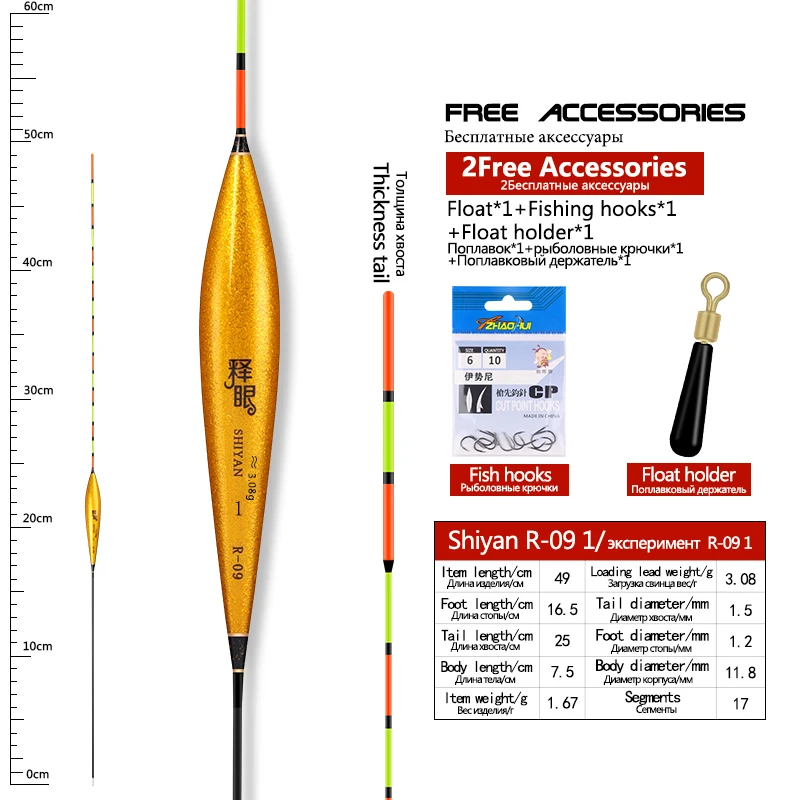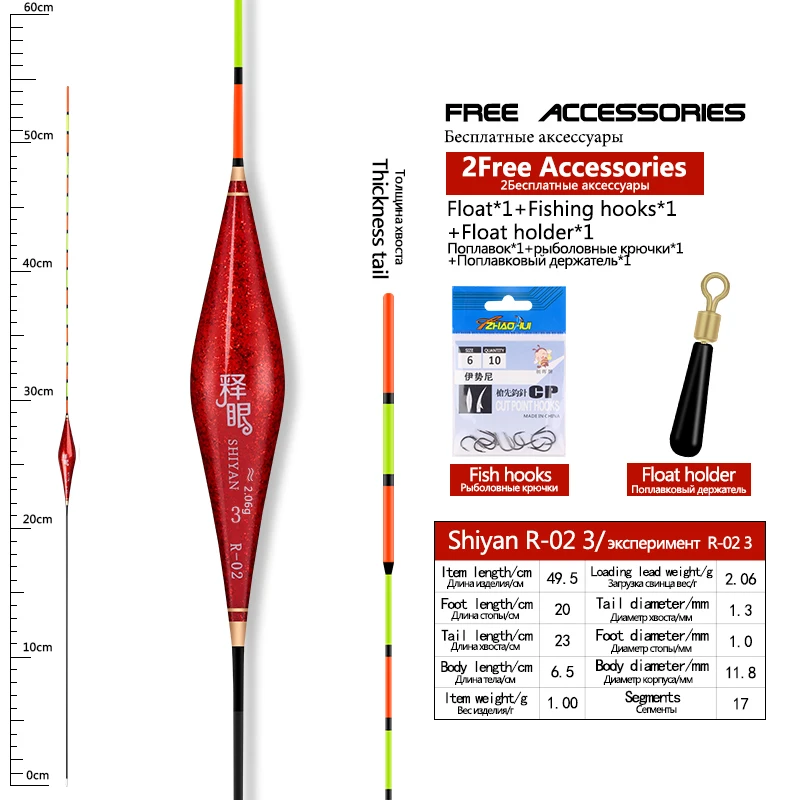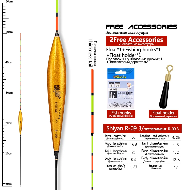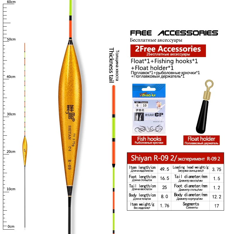 Flotador de pesca de 1 pieza+1 bolsa de anzuelos de pesca de regalo