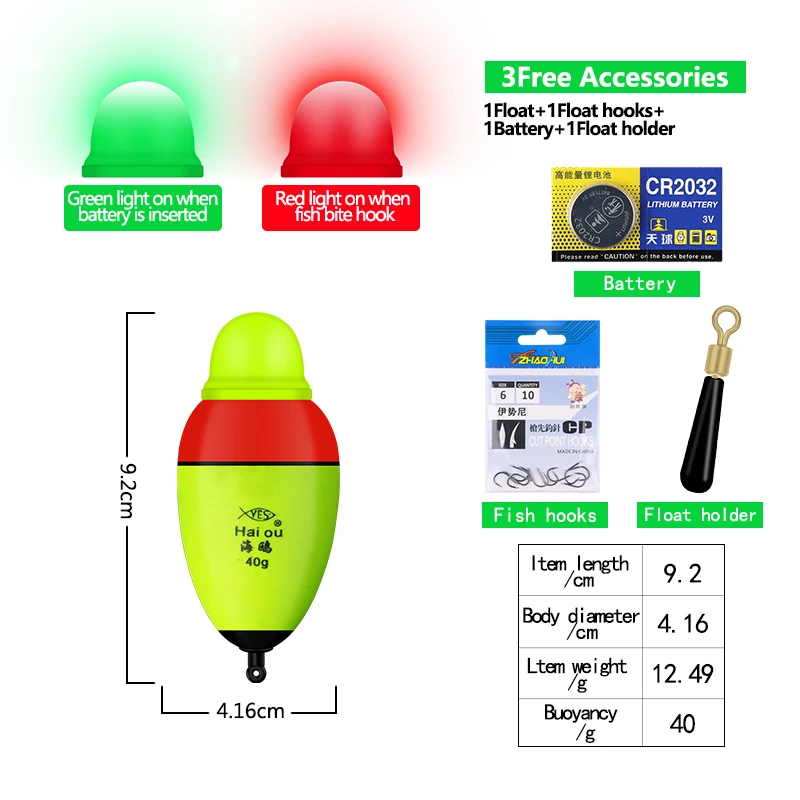 Flotador de pesca en roca EVA + 1 CR2032 + 1 gancho para bolsa + 1 asiento flotante, boya cambiable de Color, Sensor de gravedad, herramientas flotantes estables sensibles, 1 ud.