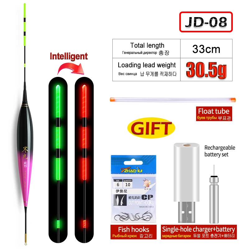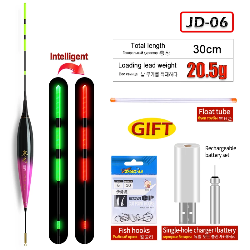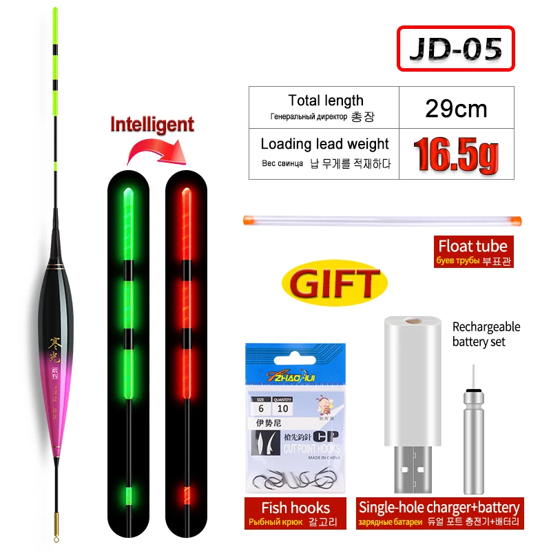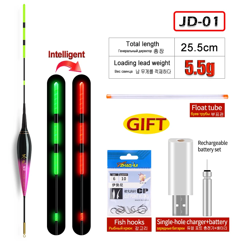 1 flotador de pesca luminoso + 1 tubo de flotador + 1 USB + 1 CR425 recargable + 1 bolsa de ganchos Sensor de gravedad boya luminosa aparejos de pesca
