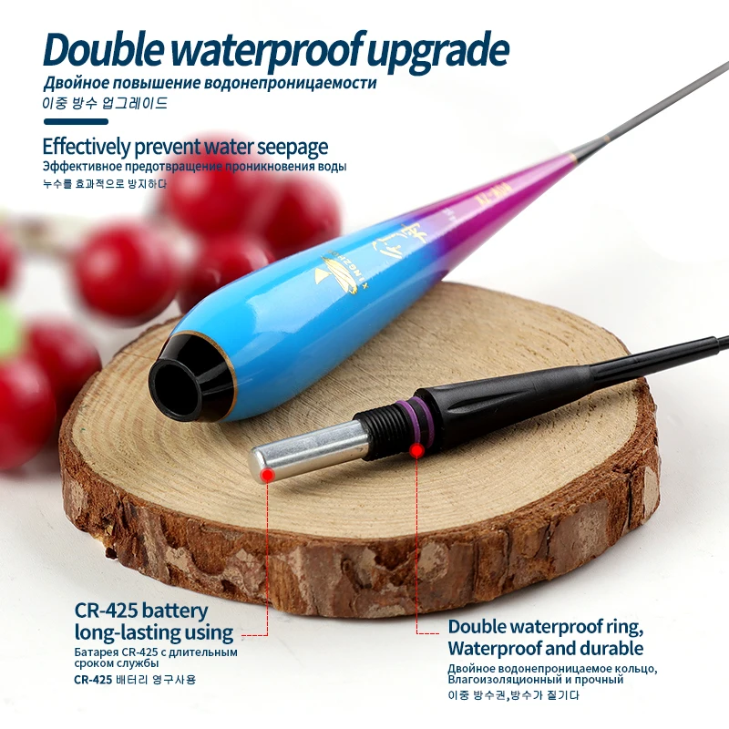 Comprar Flotador de pesca luminoso, 1 unidad, 1 USB + 1 CR425 recargable + 1 tubo de boya + 1 gancho de bolsa, boya Vertical para lago y río, aparejos eléctricos Nano Boya