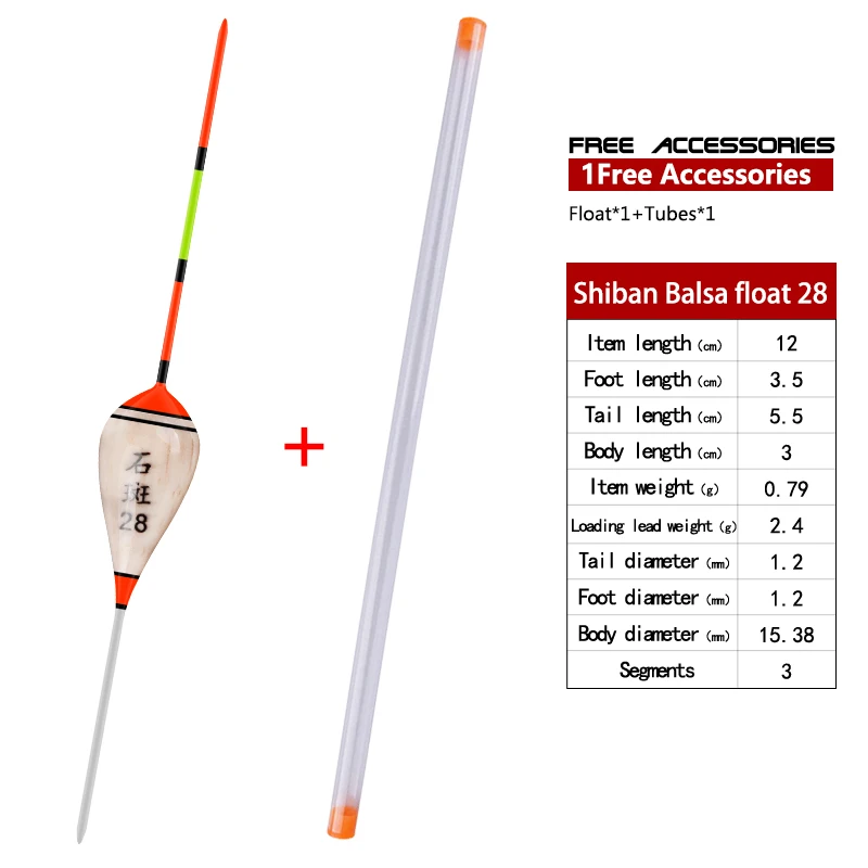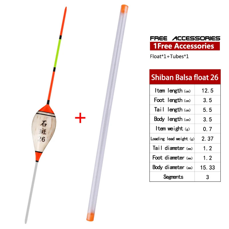 Longitud del artículo: 12,0 cm, longitud del pie: 3,5 cm, longitud de la cola: 5,5 cm, longitud del cuerpo: 3,0 cm, peso del artículo: 0,92G, peso del plomo de carga: 2,8G, diámetro del pie: 1,2mm, diámetro del cuerpo: 15,1mm, diámetro de la cola: 1,2mm, segmentos: 3