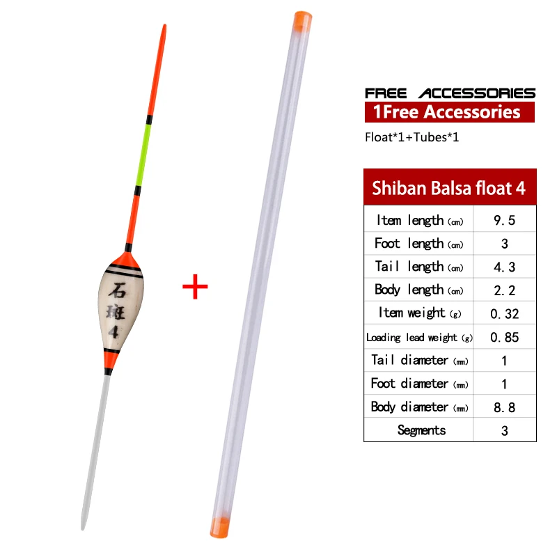 Longitud del artículo: 9,5 cm, longitud del pie: 3,0 cm, longitud de la cola: 4,3 cm, longitud del cuerpo: 2,2 cm, peso del artículo: 0,3g, peso del plomo de carga: 0,8G, diámetro del pie: 1,0mm, diámetro del cuerpo: 9,0mm, diámetro de la cola: 1,0mm, segmentos: 3
