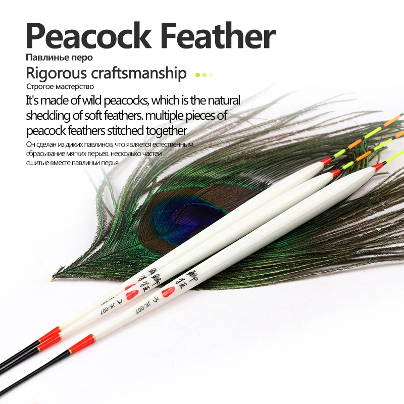Comprar Flotador de pluma de pavo real, 1 bolsa de ganchos y 1 soporte de flotador sensible y estable, boya de Río y Lago Bobber duradera, accesorios flotantes verticales, 1 unidad