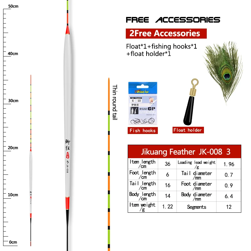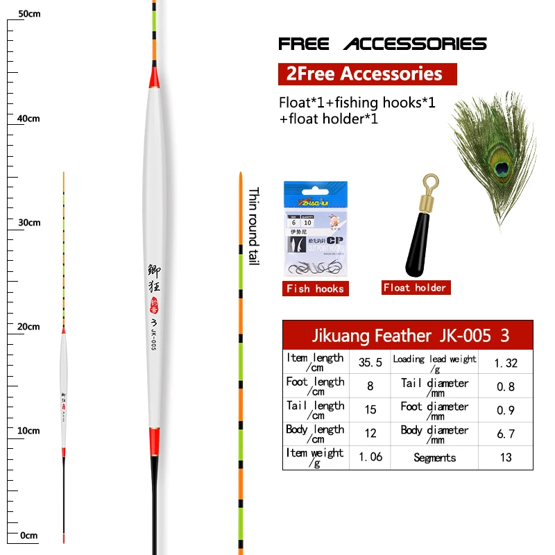 Longitud del artículo: 35,0 cm, longitud del pie: 6,0 cm, longitud de la cola: 15,5 cm, longitud del cuerpo: 13,5 cm, peso del artículo: 0,93G, peso del plomo de carga: 1,0g, diámetro del pie: 1,0mm, diámetro del cuerpo: 5,4mm, diámetro de la cola: 0,6mm, segmentos: 12