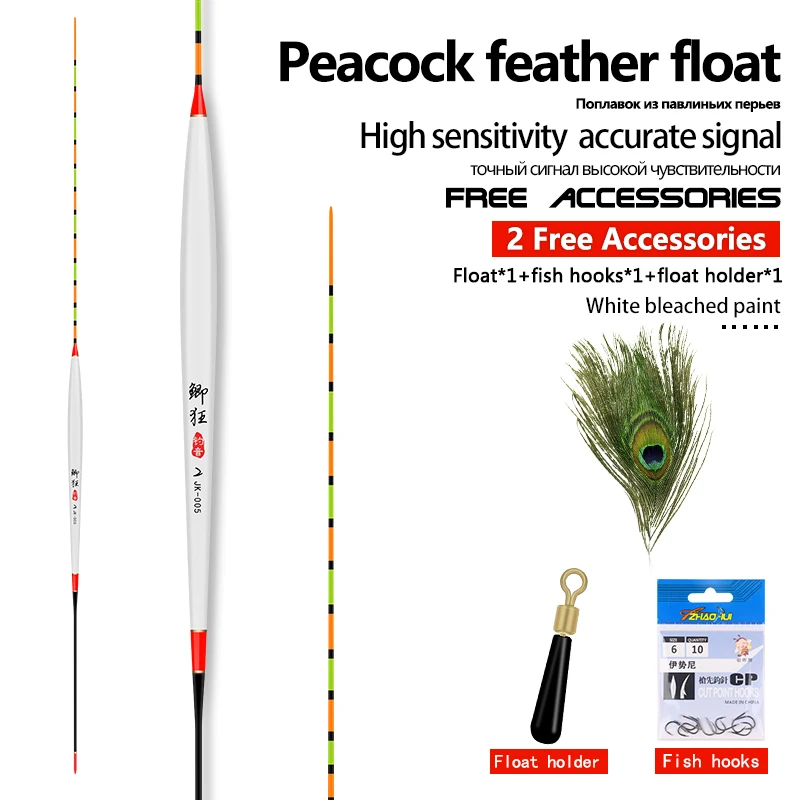 Comprar Flotador de pluma de pavo real, 1 bolsa de ganchos y 1 soporte de flotador sensible y estable, boya de Río y Lago Bobber duradera, accesorios flotantes verticales, 1 unidad