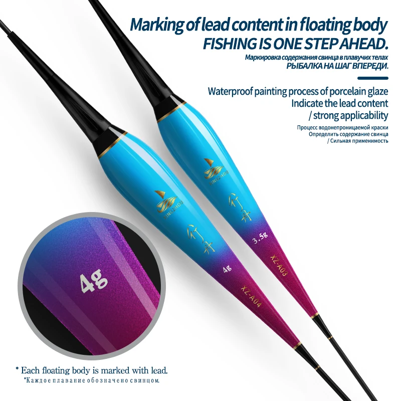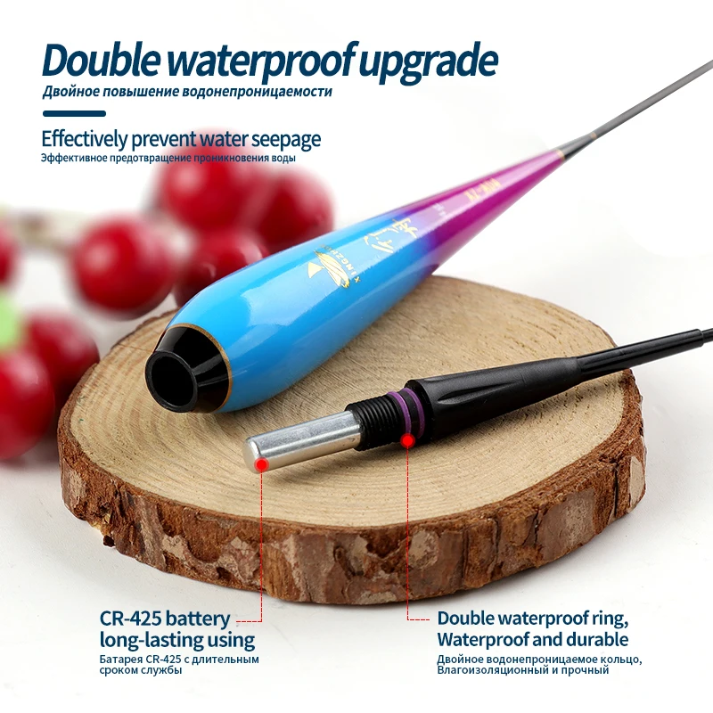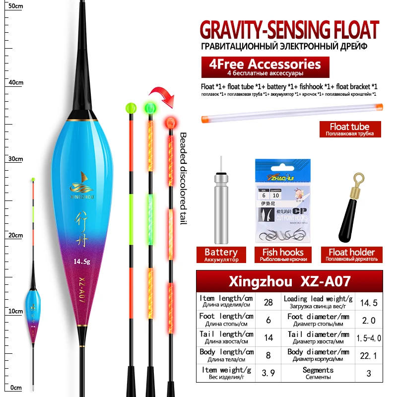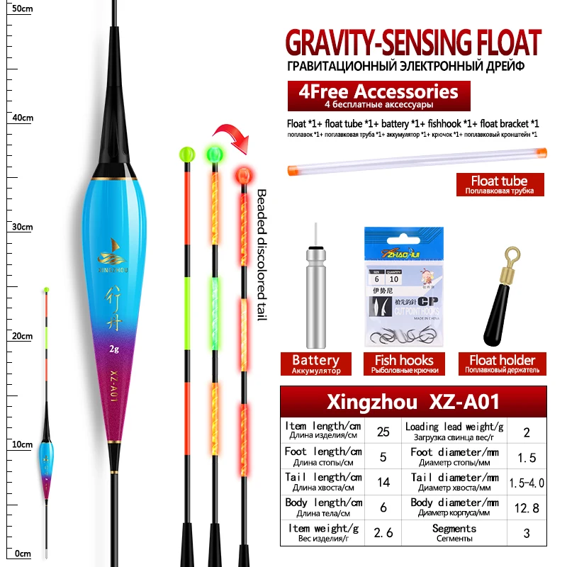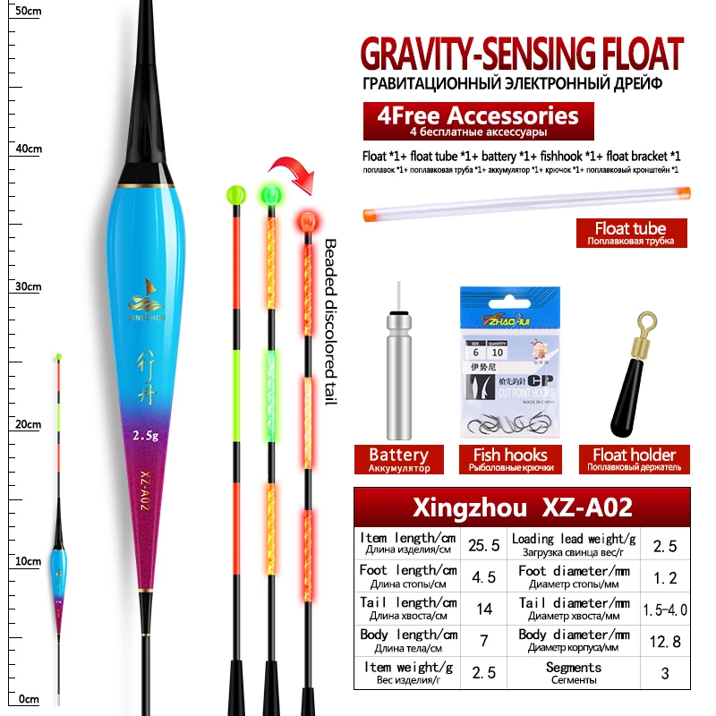 1, The float tail is designed gravity sensor, which can change color when fish bite the hook while fishing.