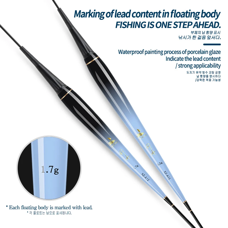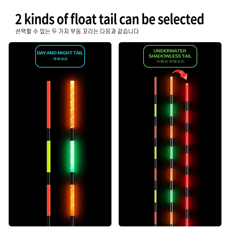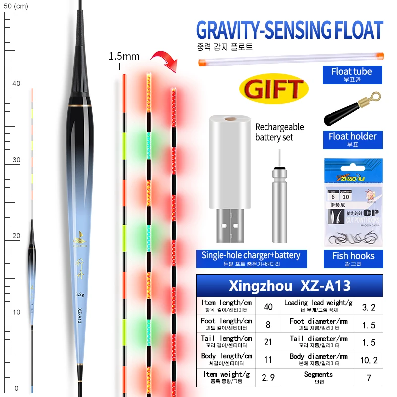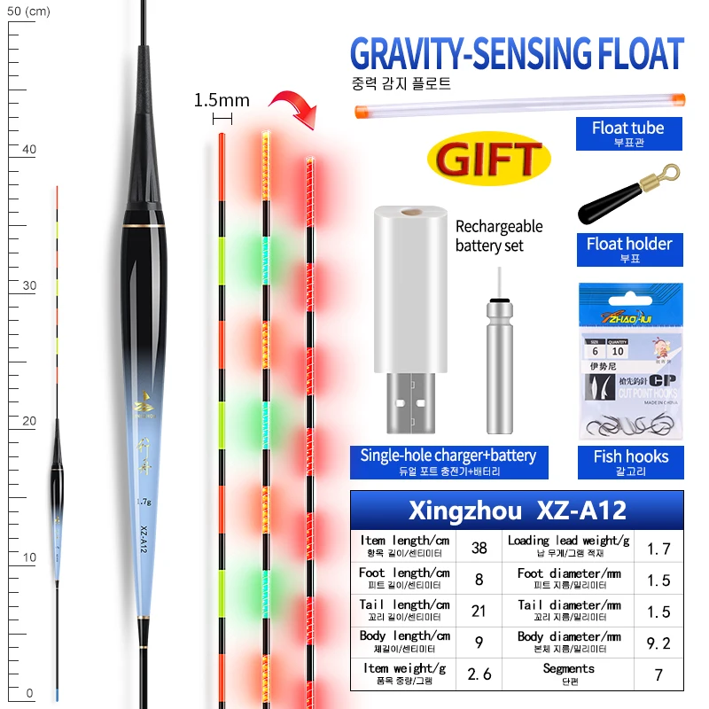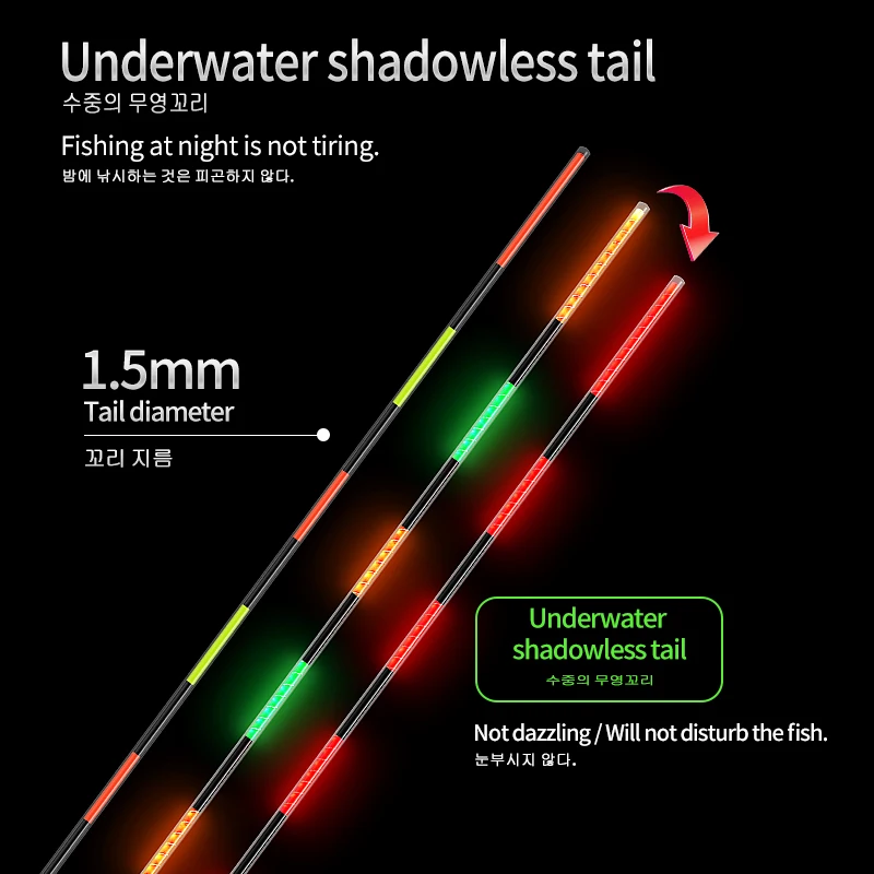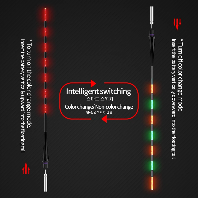 Características:1. La cola flotante es un sensor de gravedad, que puede cambiar de color cuando los peces muerden los anzuelos de pesca.2. El flotador está hecho de nanomaterial de alta calidad, que hace que los flotadores sean duraderos.