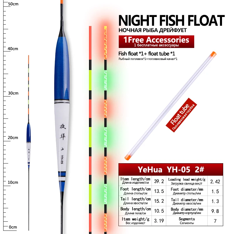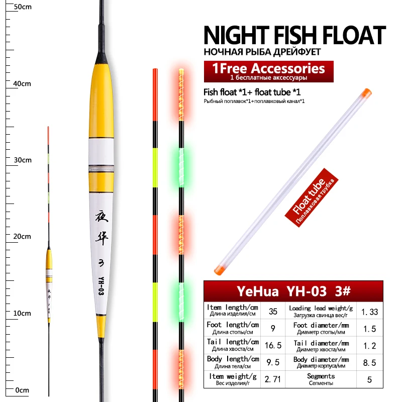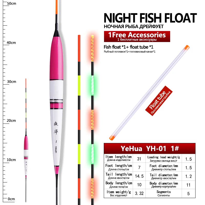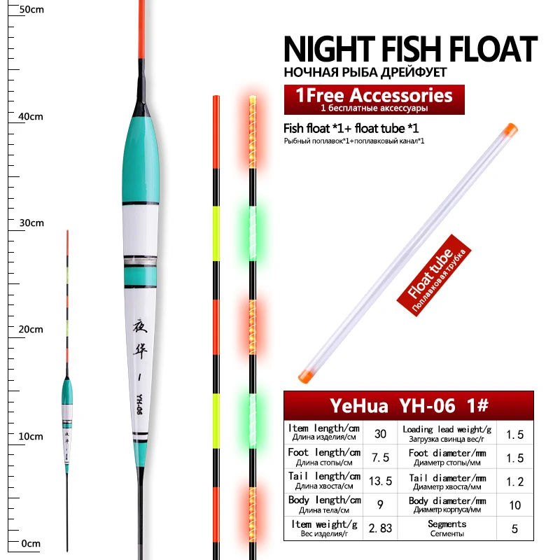 Comprar Flotadores eléctricos de pesca Balsa + 1 tubo Flotador para aguas poco profundas, Boya Luminosa nocturna, aparejos de agua dulce sin batería, 1 unidad