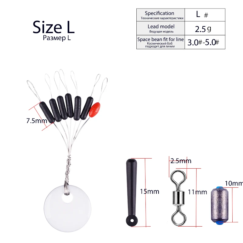 Longitud de gran tamaño: 7,5mm, que se ajusta a la línea de pesca 3,0 #-5,0 #