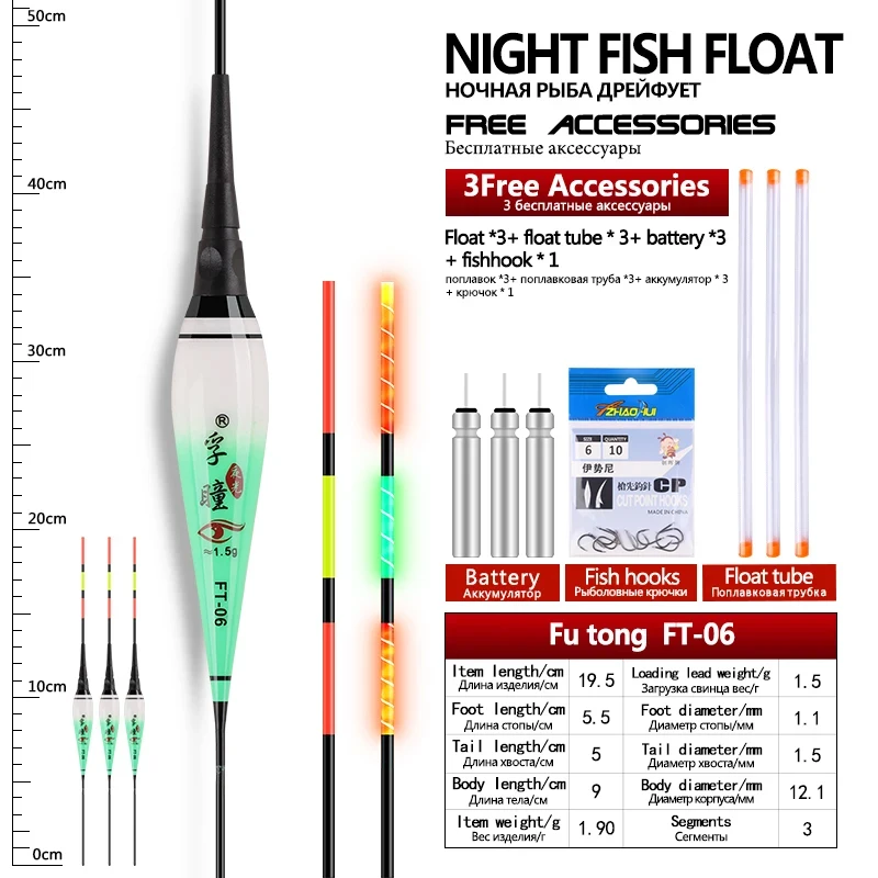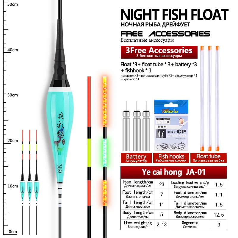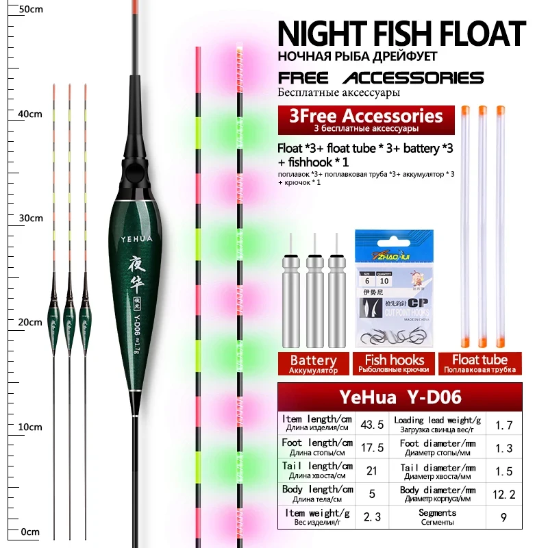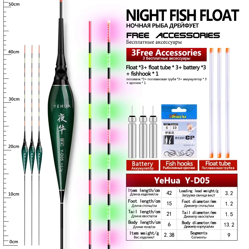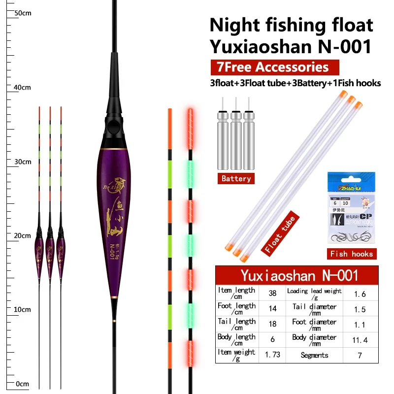 Comprar Flotadores de pesca eléctricos Nano, accesorios de pesca nocturna Boya luminosos, agua dulce, CR425, 3 unidades, tubo flotador, 1 bolsa de ganchos, 3 unidades