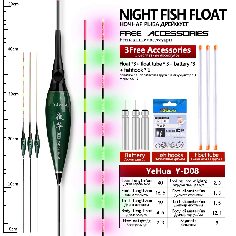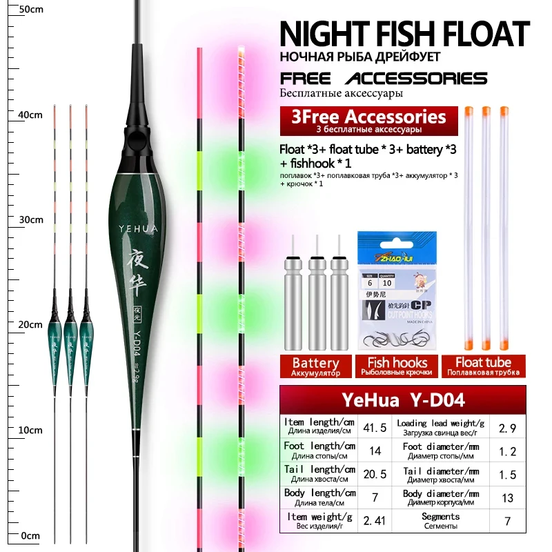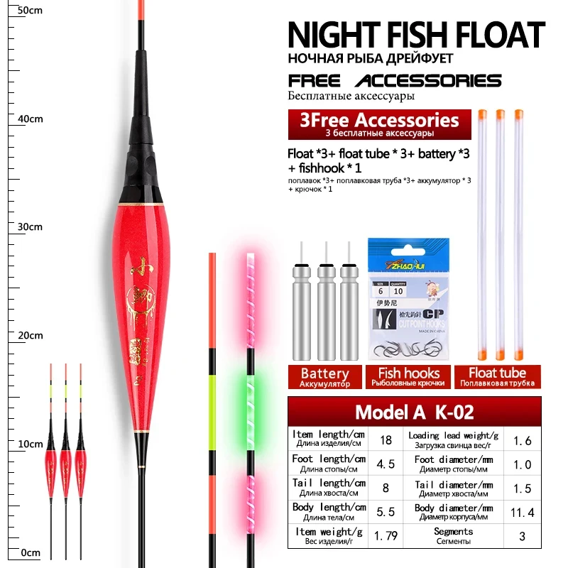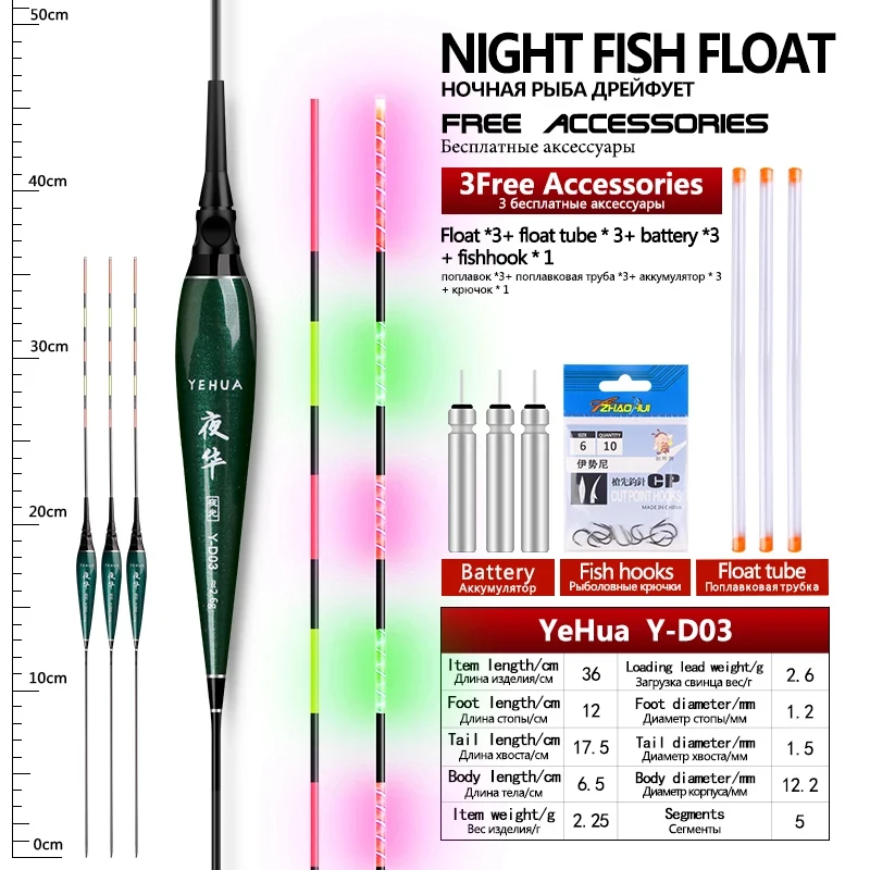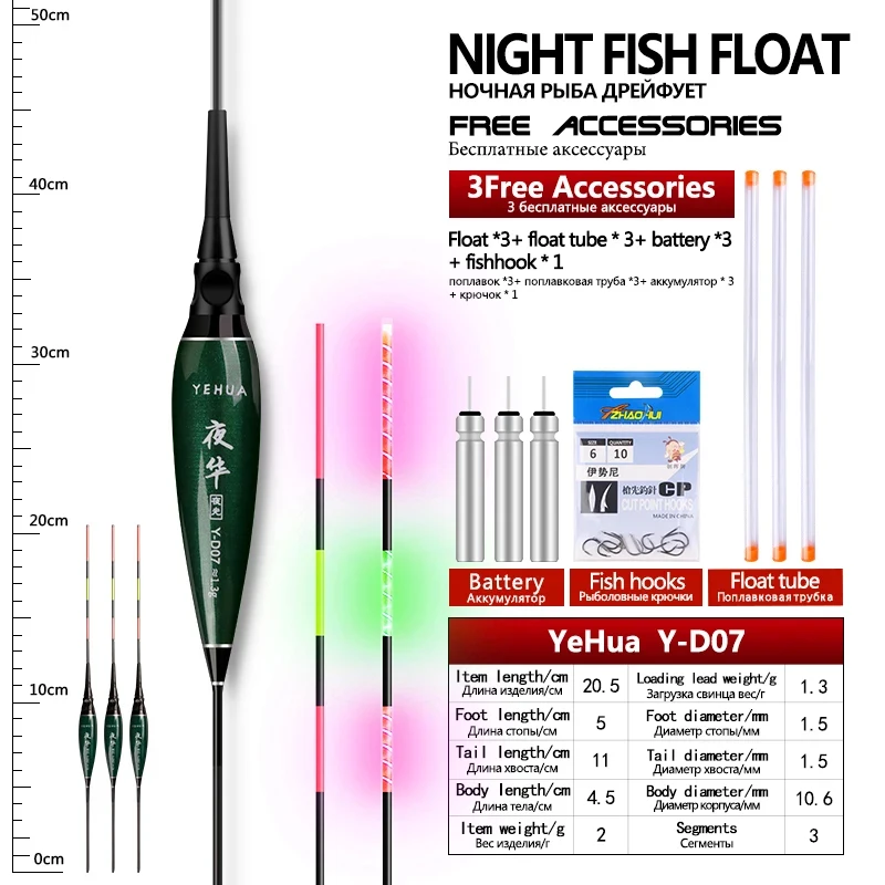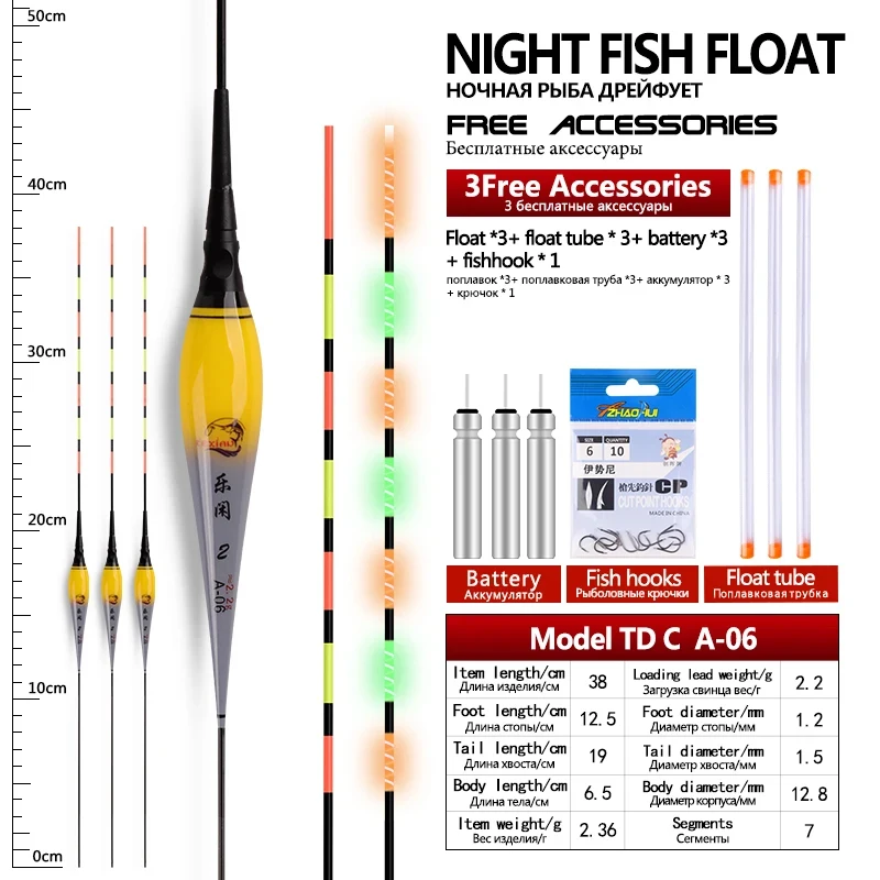 Comprar Flotadores de pesca eléctricos Nano, accesorios de pesca nocturna Boya luminosos, agua dulce, CR425, 3 unidades, tubo flotador, 1 bolsa de ganchos, 3 unidades