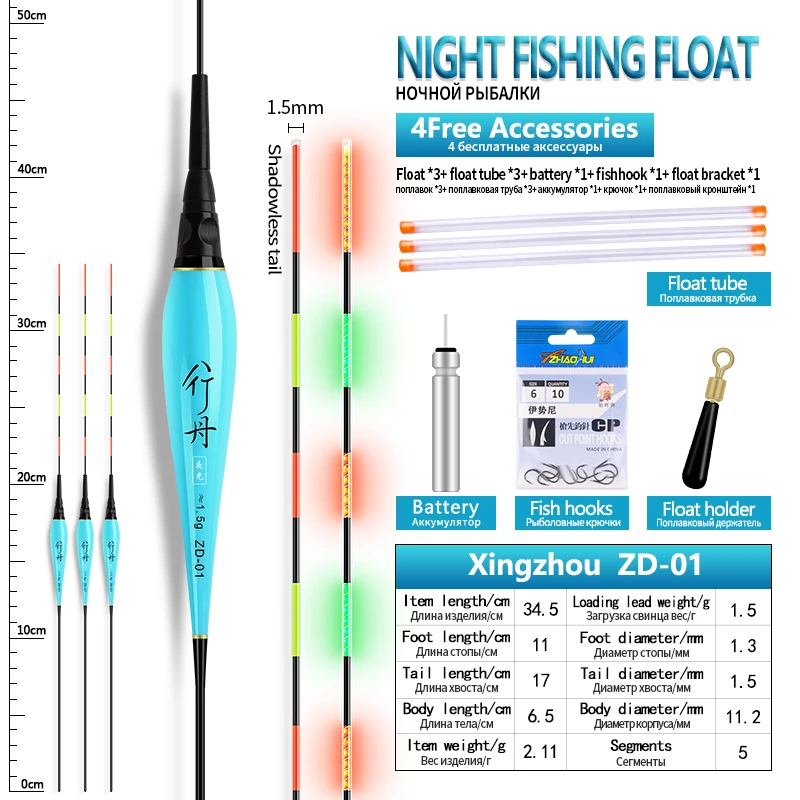 Comprar Flotadores de pesca luminosos de 3 piezas, 3 tubos de flotación, 1 bolsa de ganchos, Nano Night Electric Boya Lake River, Flotador, accesorios de pesca de carpa