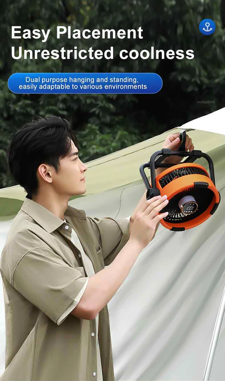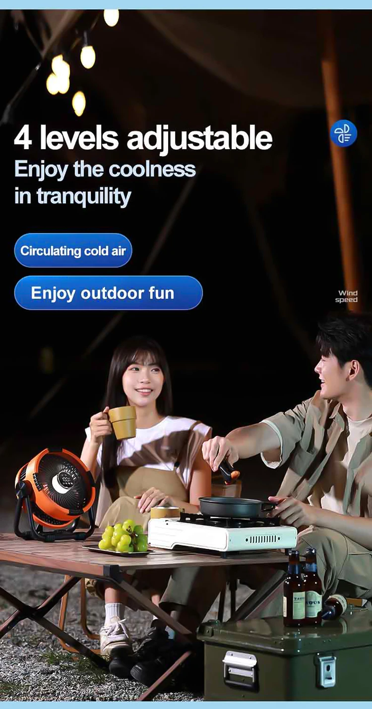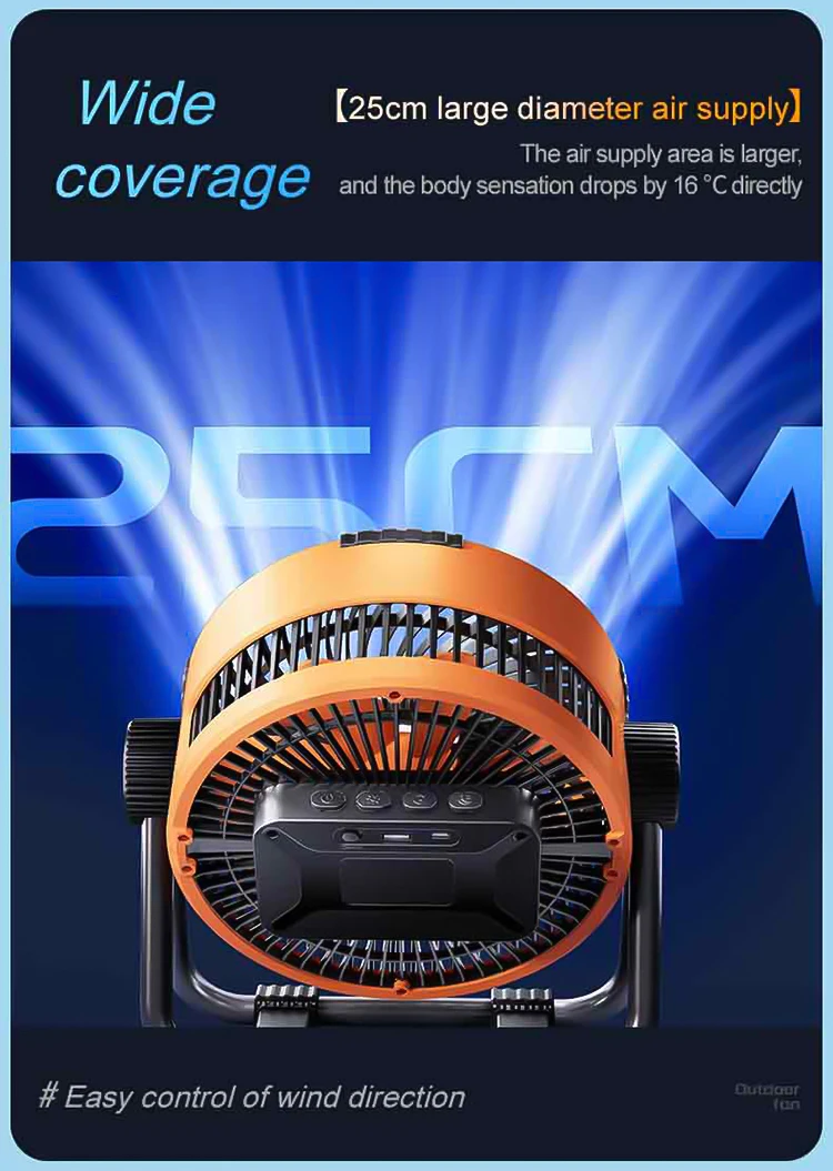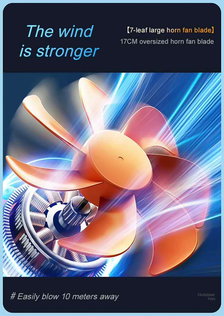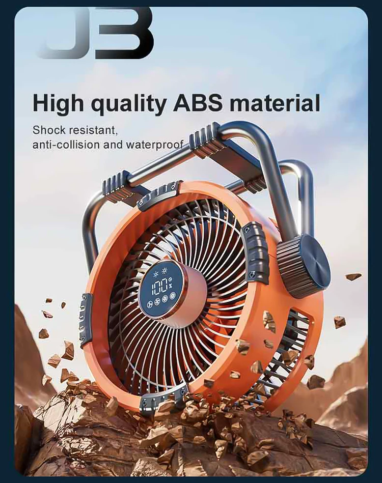 5, [RESISTENTE Y ANTI-CORRAMIENTO] Hecho de material ABS resistente para uso anticaída y anticolisión, y la base ultraestable mantiene el ventilador firmemente en su lugar incluso cuando trabaja a la velocidad más alta, uso perfecto para diferentes ocasiones al aire libre..También es adecuado para uso en interiores como ventilador de escritorio al estudiar, trabajar, leer, etc.
