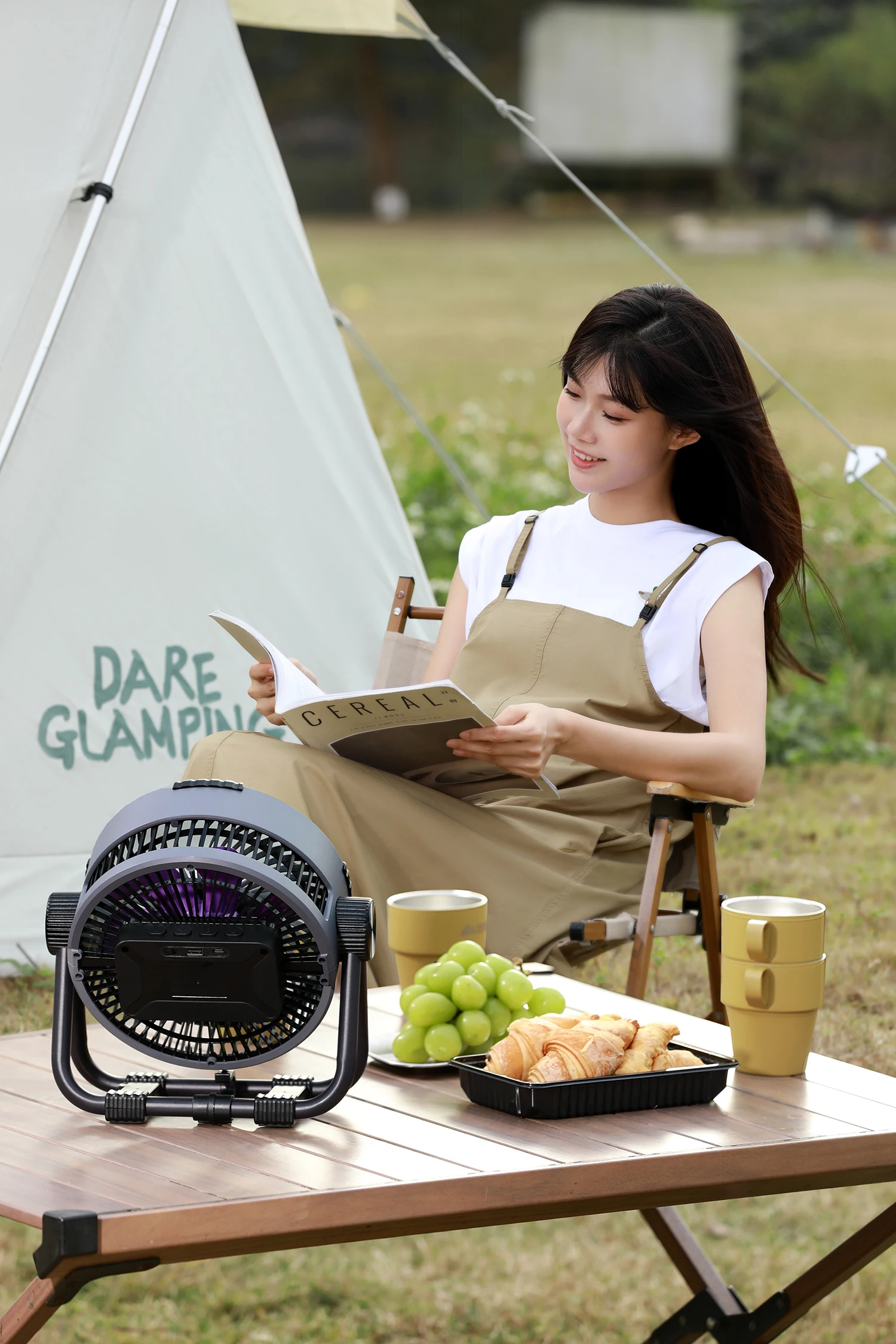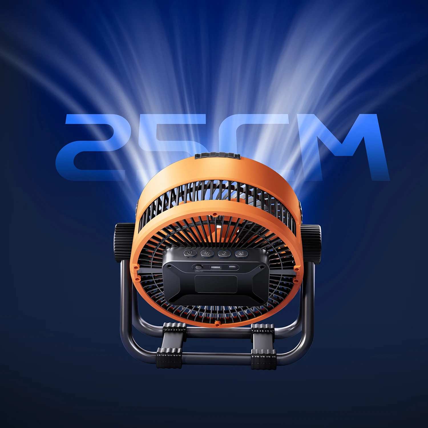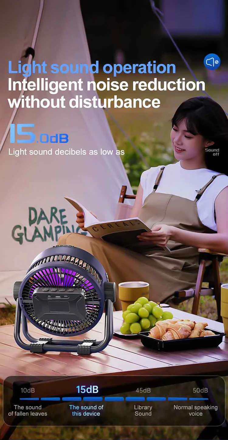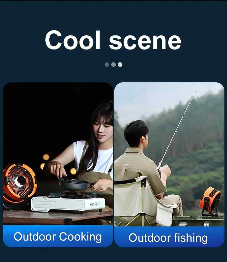 5, [RESISTENTE Y ANTI-CORRAMIENTO] Hecho de material ABS resistente para uso anticaída y anticolisión, y la base ultraestable mantiene el ventilador firmemente en su lugar incluso cuando trabaja a la velocidad más alta, uso perfecto para diferentes ocasiones al aire libre..También es adecuado para uso en interiores como ventilador de escritorio al estudiar, trabajar, leer, etc.
