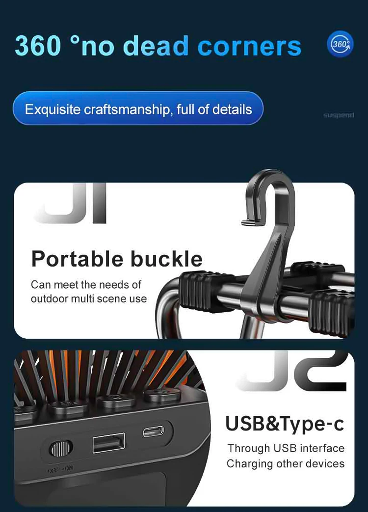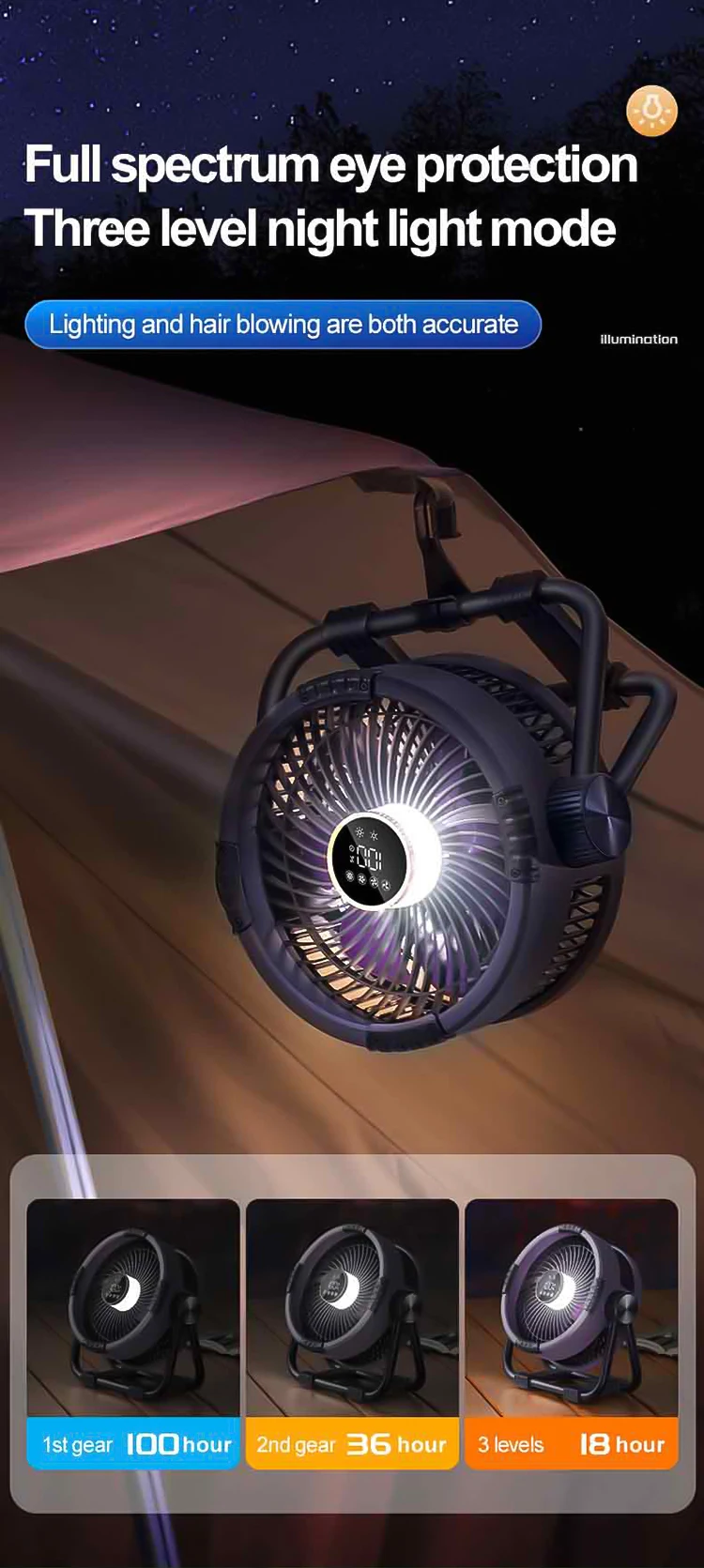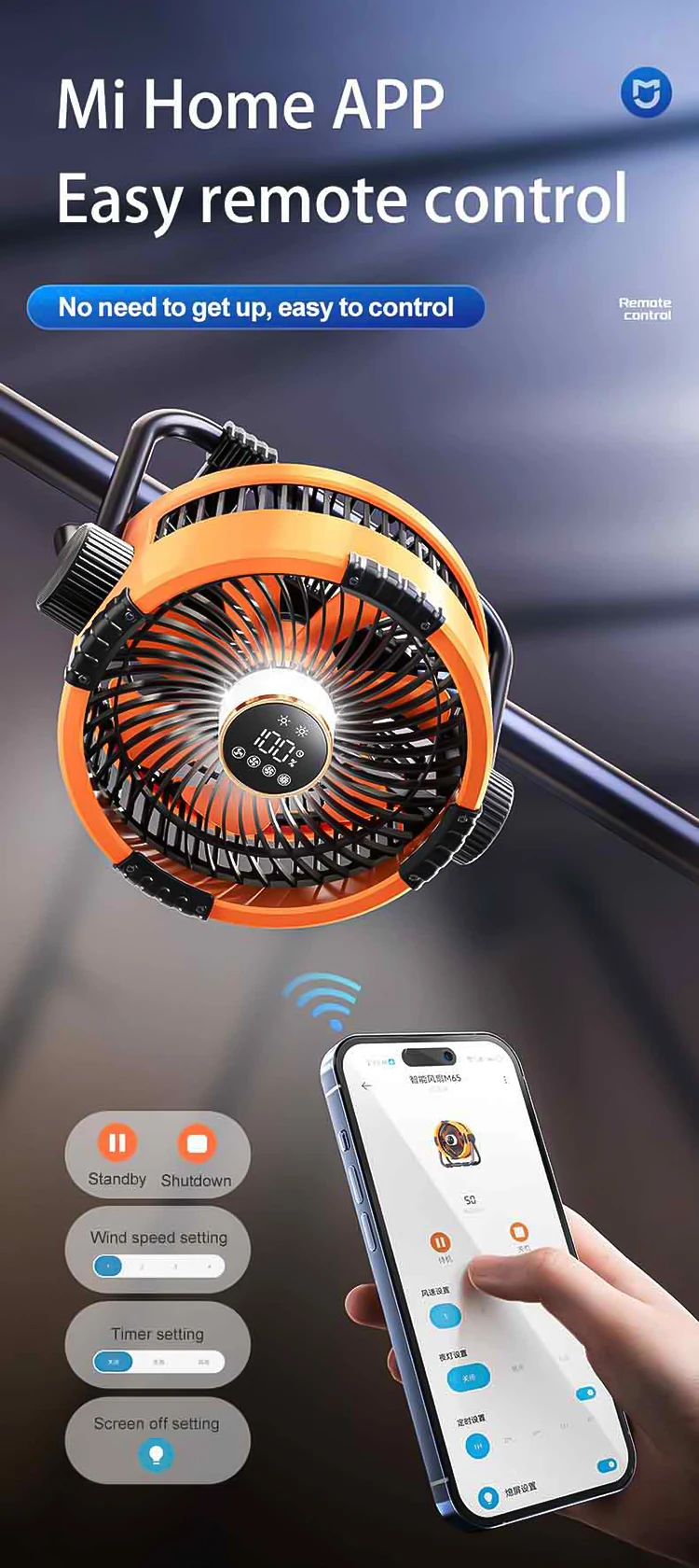 3, [Control remoto y fácil de usar] Este ventilador viene con un control remoto extraíble, tiene una sensibilidad de alta intensidad para que pueda operar un ventilador de escritorio desde una distancia de hasta 16,5 pies.Un 360° Gancho giratorio y plegable en la parte inferior para colgar el ventilador de la tienda en cualquier lugar que desee.