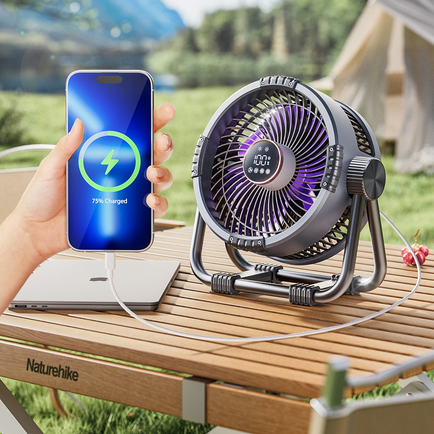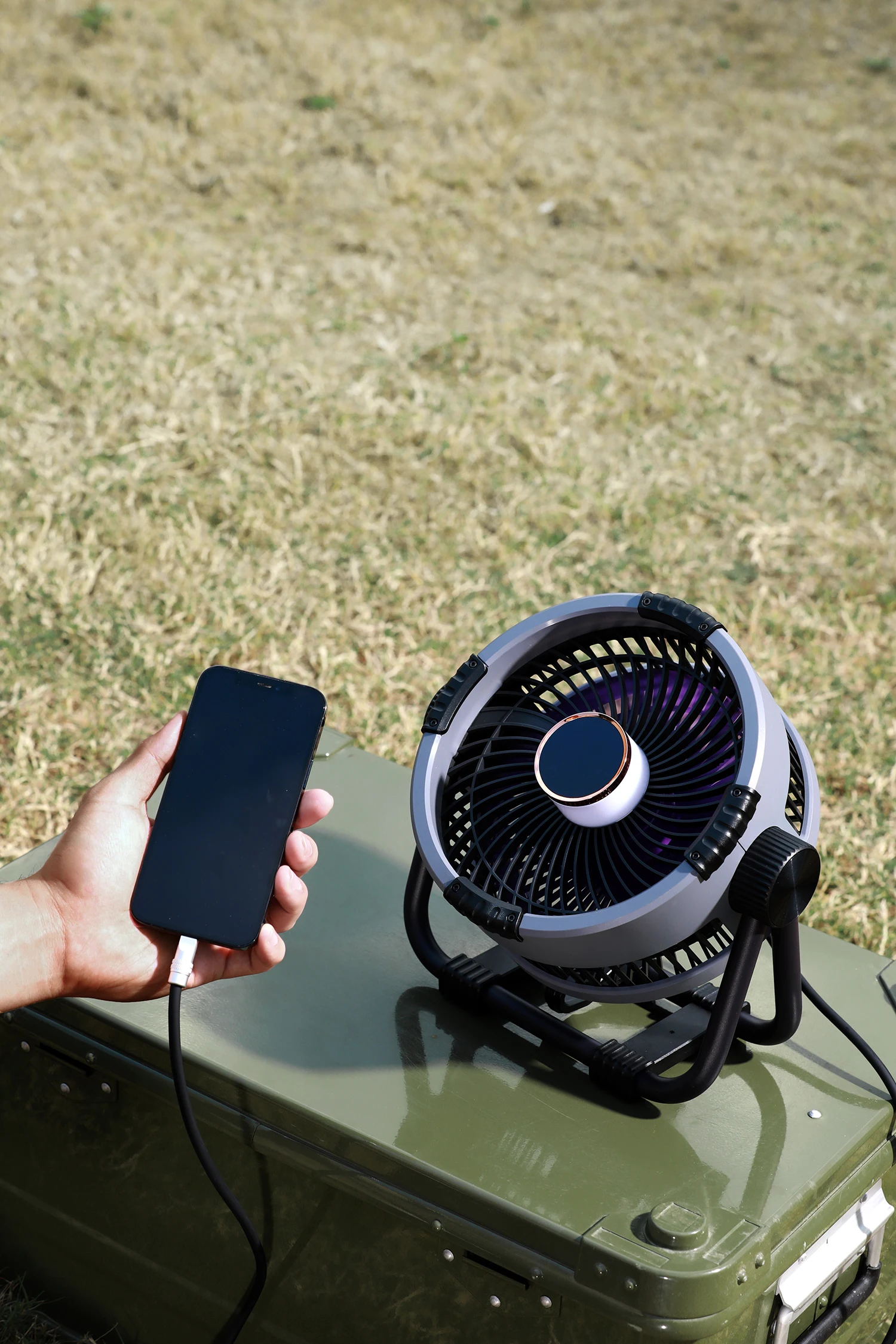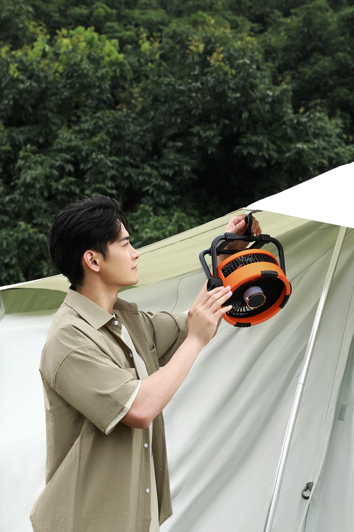 Comprar FMAi M65 ventilador de Camping 6 en 1 para exteriores, batería recargable de 20000mAh, circuladores de aire portátiles de 4 velocidades con gancho y luz LED
