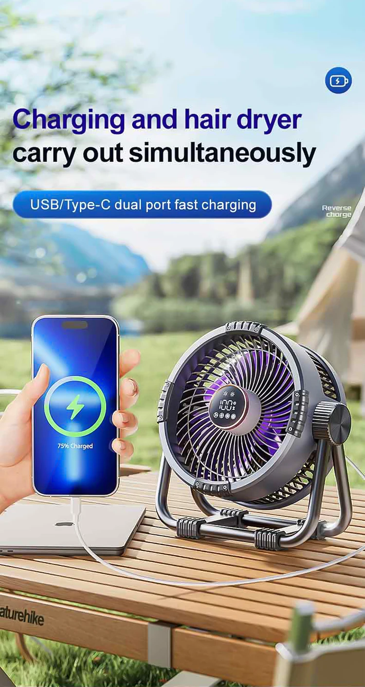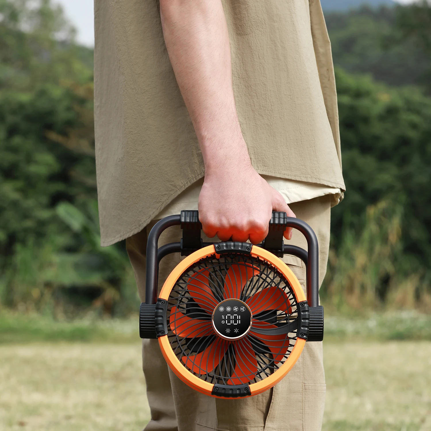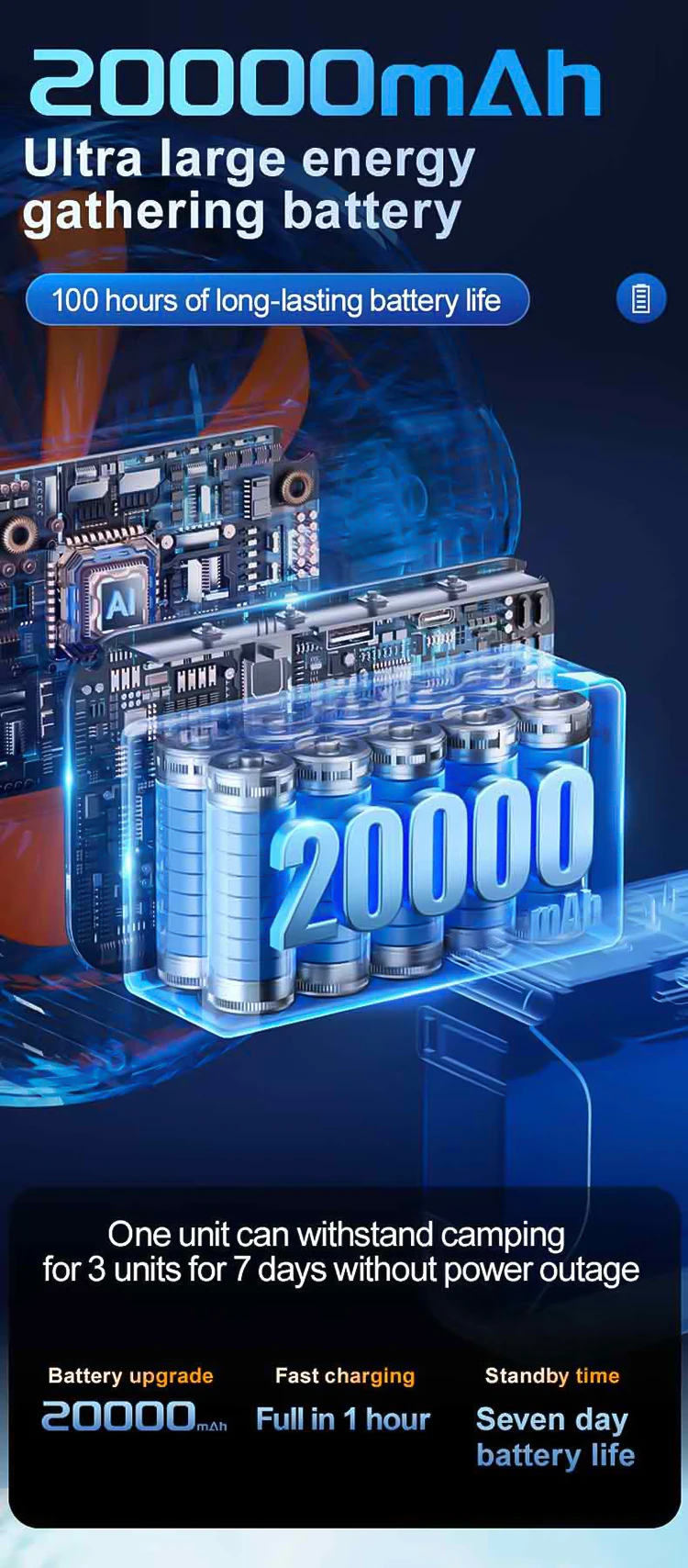 1, [BATERÍA RECARGABLE DE 10000 mAh] Alimentado por una batería recargable de 20000 mAh, se puede cargar completamente en 4-6 horas con entrada de 5V3A a través del cable tipo C incluido y proporciona una duración de 18 a 100 horas.Puerto de salida USB incorporado de 5 V/2 A para cargar el ventilador cómodamente, o úselo para alimentar otros dispositivos, una buena ayuda para viajes de campamento, cortes de energía, huracán, etc.