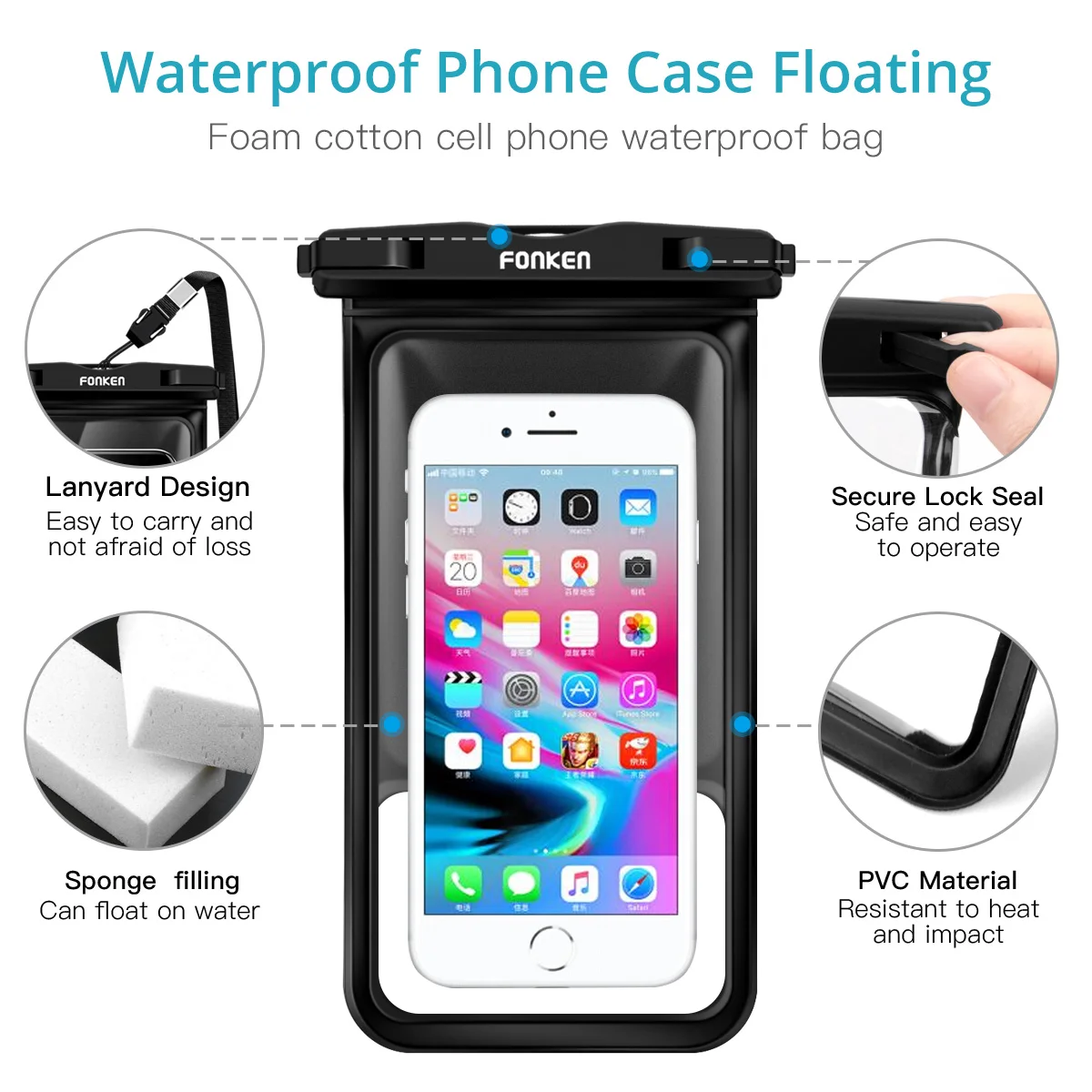 Comprar FONKEN-funda impermeable para teléfono, bolsa flotante para natación en el mar, bolsa seca para natación subacuática, bolsa flotante de esponja para teléfono inteligente de 6,5 pulgadas
