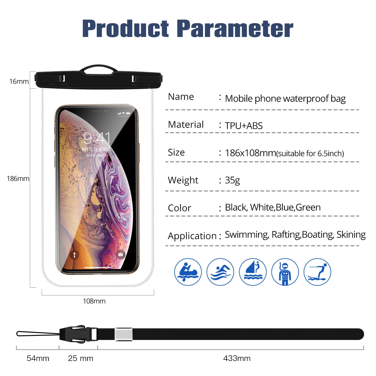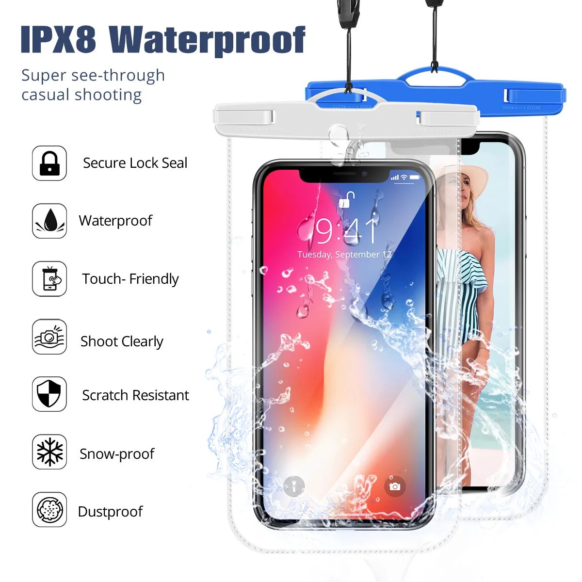 Funda impermeable para teléfono, bolsa seca flotante de almacenamiento bajo el agua, para buceo, natación, teléfono móvil, funda a prueba de agua