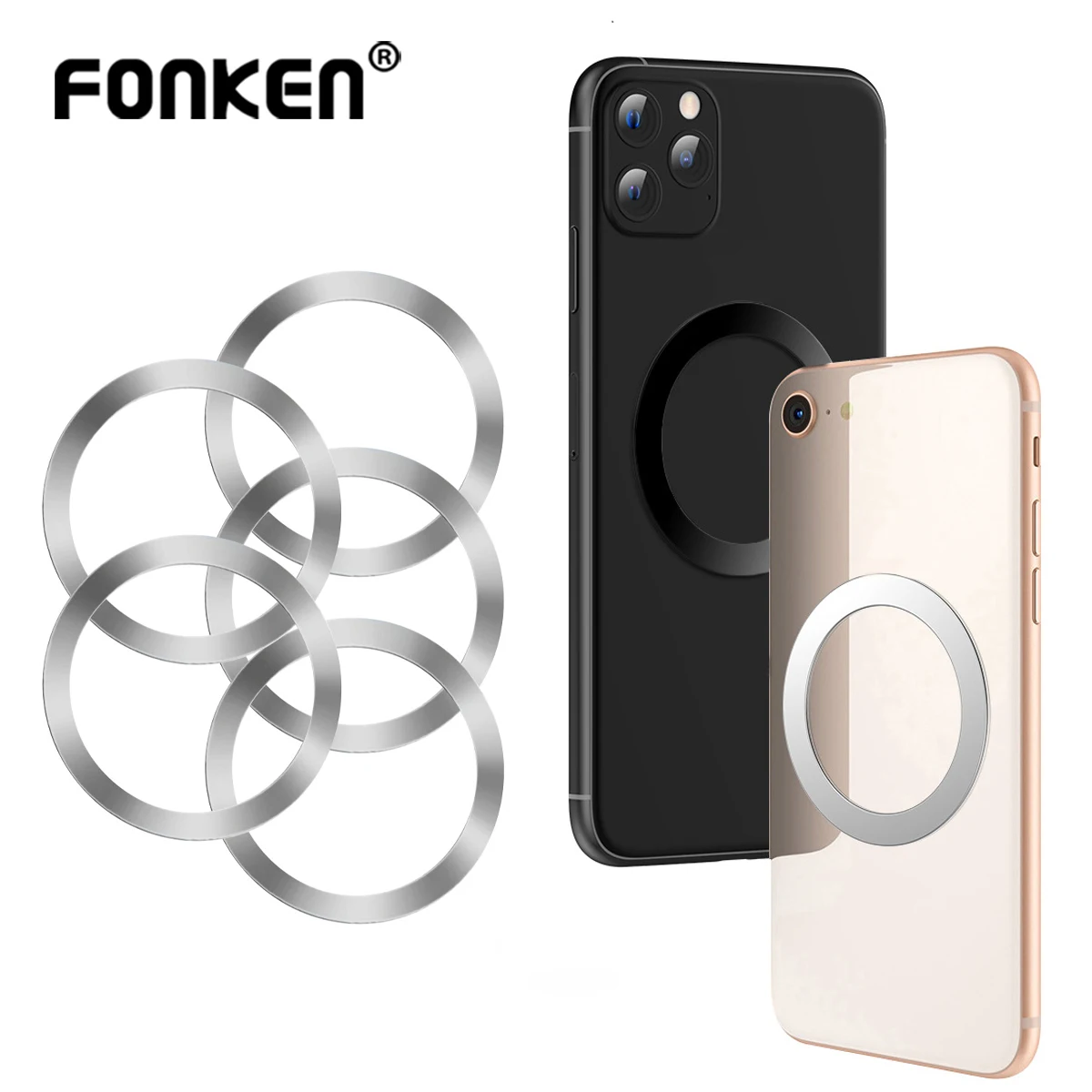 Comprar FONKEN placa magnética de Metal para cargador Magsafe, soporte de teléfono para coche, pegatina de anillo para iPhone X XR 11, hoja redonda de carga inalámbrica