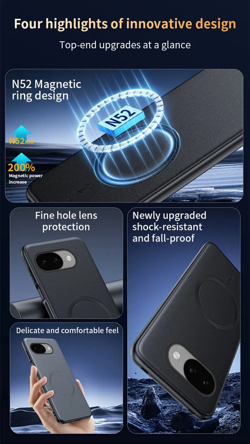 For Google Pixel 10A Case Magnetic Leather Shield Cover For Google Pixel 10A Anti-Fingerprint Non-Slip PC+TPU